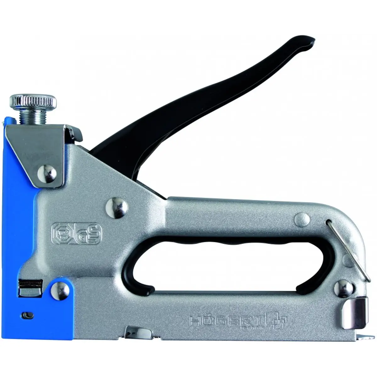 Agrafador manual. Projetada para agrafar rápido de têxteis em superfícies de madeira e base de madeira.