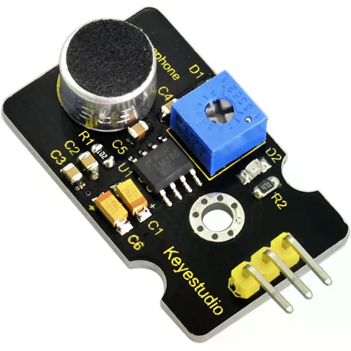 Possui também um orifício de fixação, permitindo montá-lo noutros dispositivos. Pode ser usado para criar projetos interativos, como um interruptor ativado por voz.