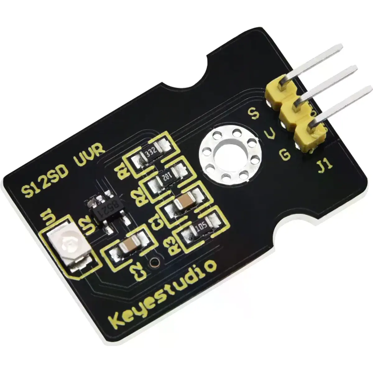 O sensor ultravioleta KS0204 é utilizado para detectar luz ultravioleta. Inclui o GUVA-S12SD, aplicado para medir o índice UV de dispositivos vestíveis inteligentes, como relógios, smartphones e dispositivos ao ar livre com deteção de índice UV.