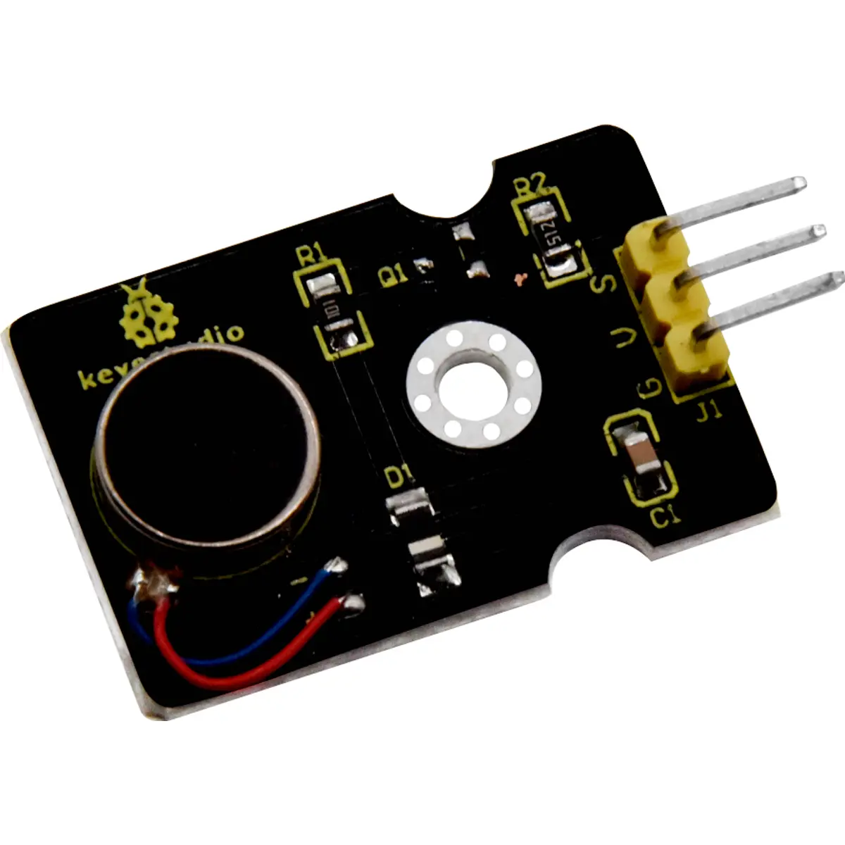 O módulo de motor de vibração keyestudio facilita a conversão de sinais eléctricos em vibração mecânica.