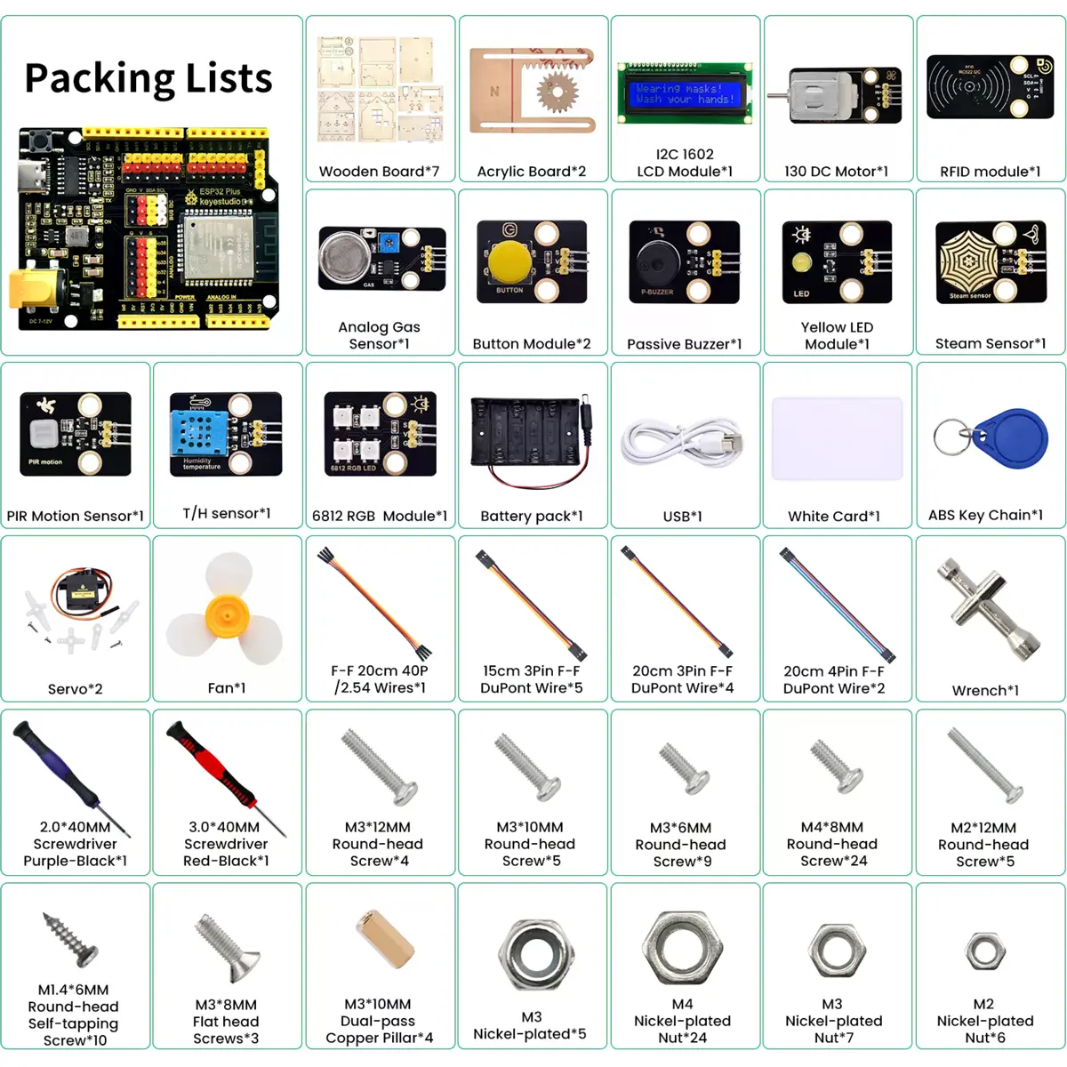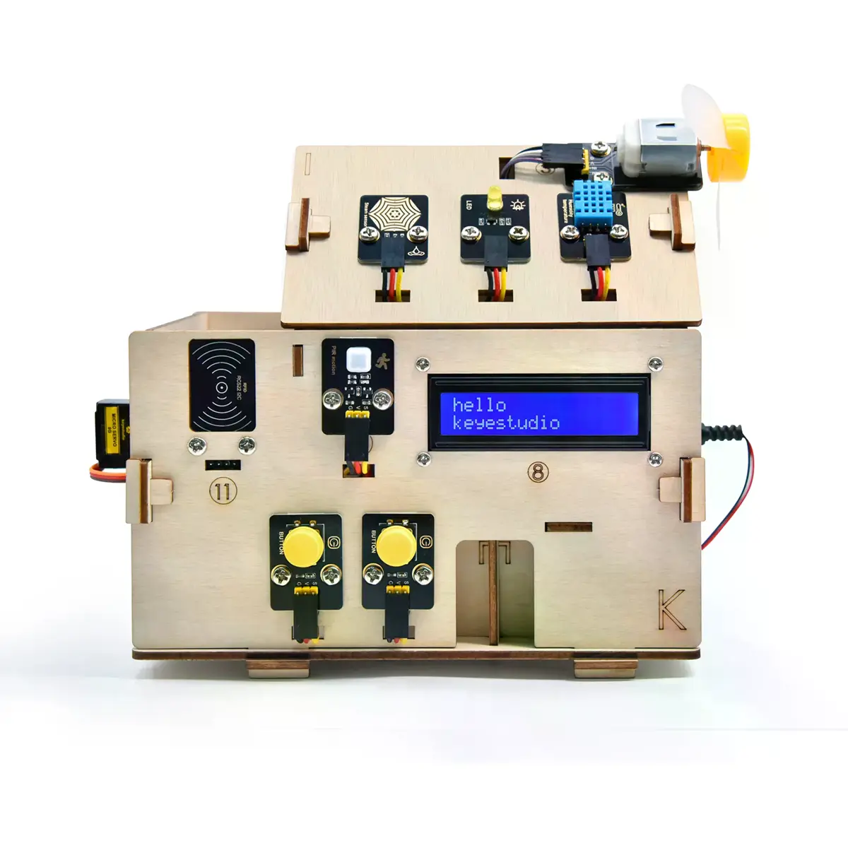 Este kit de iniciação à Casa Inteligente baseia-se no microcontrolador ESP32, integrando uma variedade de sensores, módulos e funcionalidades de rede. É ideal para aprendizagem prática dos princípios fundamentais da Internet das Coisas (IoT), eletrónica e automação residencial.