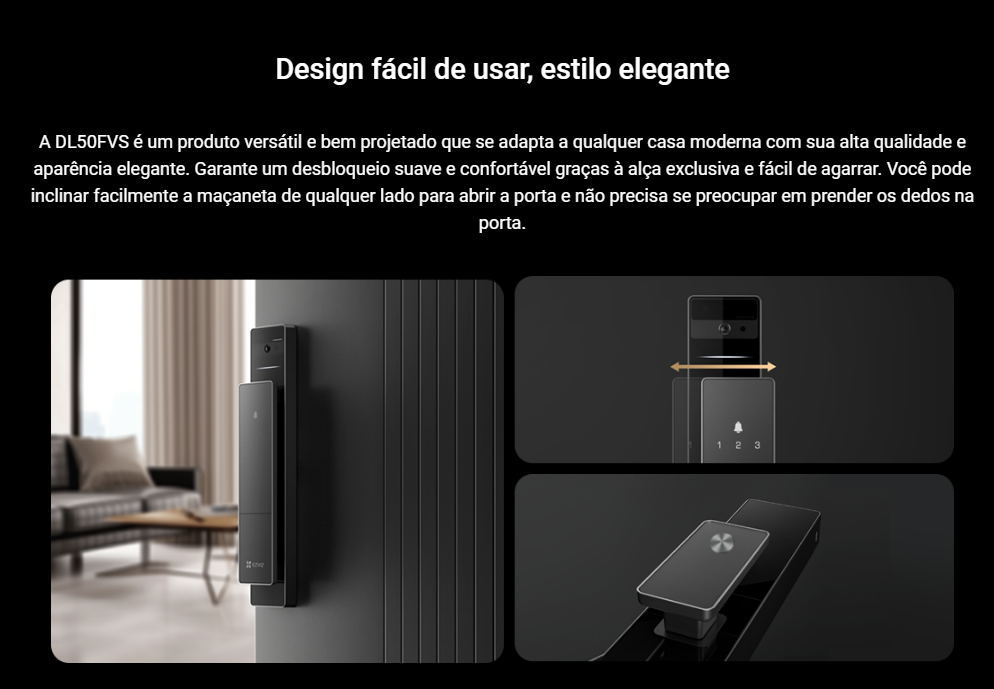 A DL50FVS é a mais recente inovação da EZVIZ no segmento de fechaduras inteligentes, concebida para transformar a sua porta de entrada com tecnologia de reconhecimento facial 3D de última geração e funcionalidades avançadas de segurança residencial. Este dispositivo multifuncional integra, numa só solução, uma fechadura inteligente, uma câmara de vigilância e uma campainha com vídeo, proporcionando um acesso seguro, cómodo e eficiente ao seu lar. Para além de garantir uma protecção robusta, eleva também o nível de conveniência e conforto no seu dia-a-dia.
