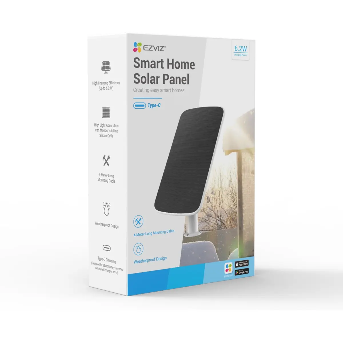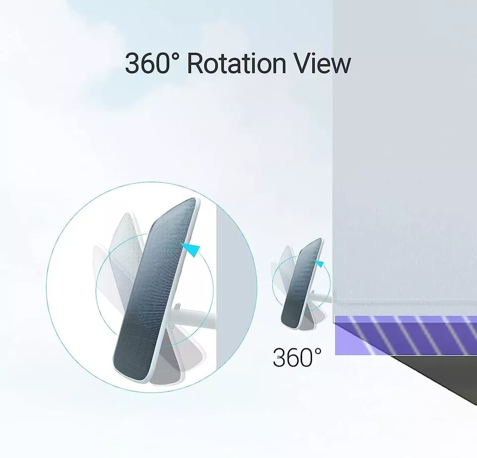 O EZVIZ Solar Panel-E fornece uma solução de carregamento contínuo e ecológica para câmaras de segurança alimentadas por bateria. Com células solares monocristalinas de alta eficiência, oferece até 6,18 W de potência, garantindo que a sua câmara permaneça operacional dia e noite, mesmo em condições climáticas adversas.