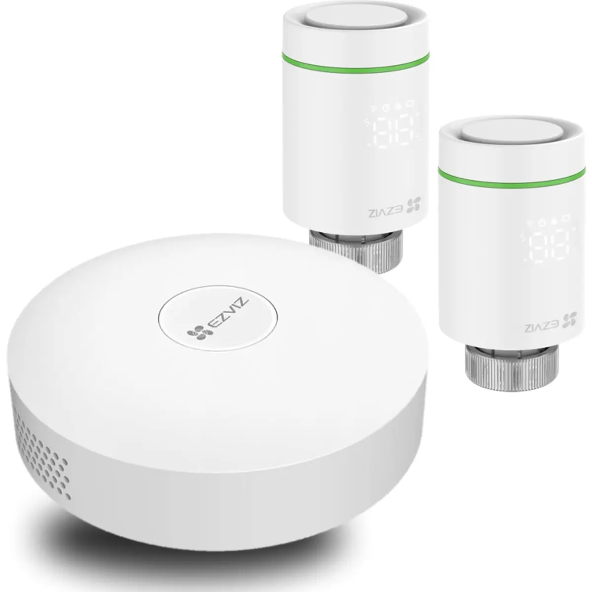 Ezviz T55 Kit - Kit 2x Cabeças de Válvula Termostática Zigbee T55 + Gateway WiFi A3