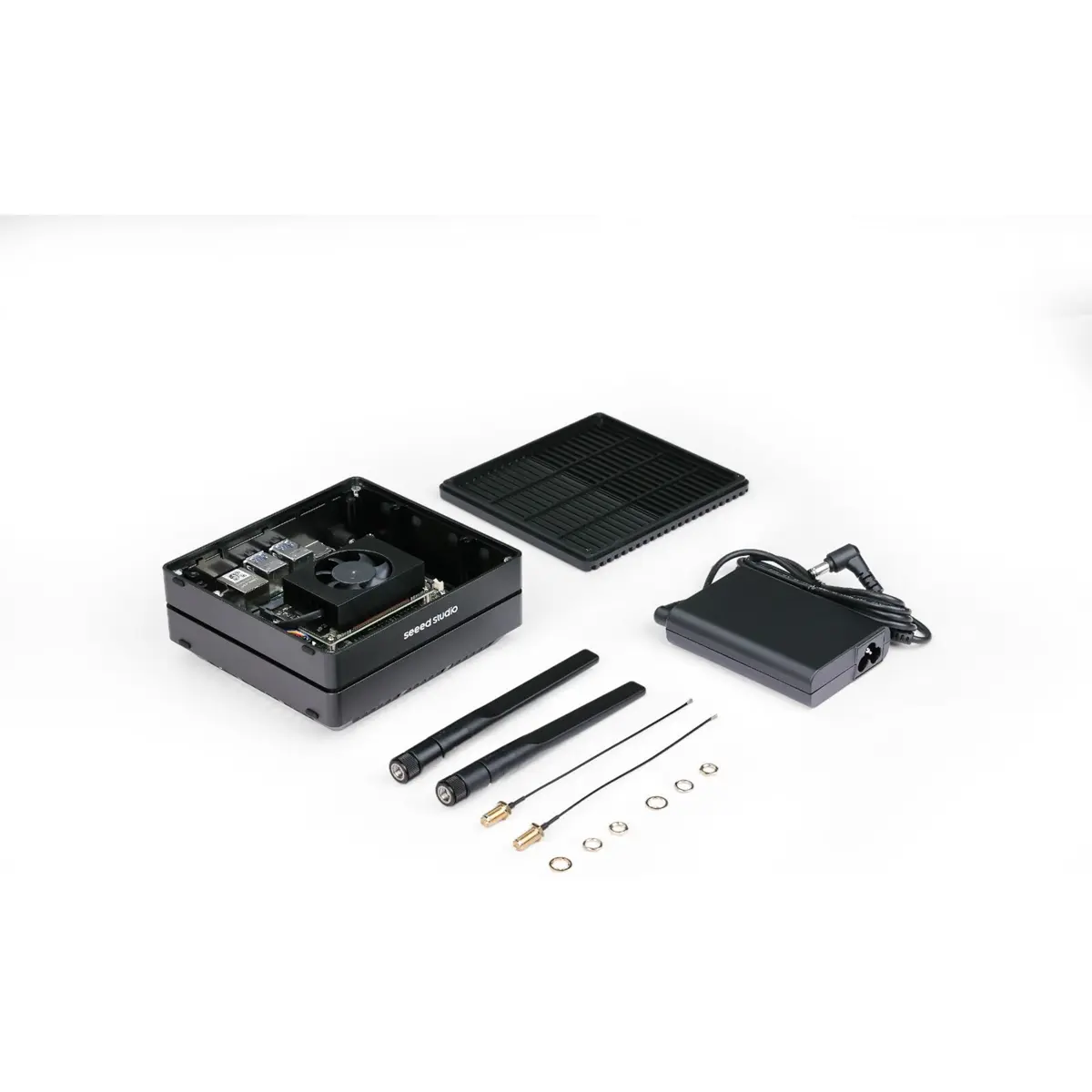 Inclui o módulo Jetson Orin Nano 8GB, caixa metálica com dissipador, SSD NVMe de 128GB, JetPack pré-instalado e conectividade sem fios. Com opções de expansão através das interfaces M.2, adapta-se facilmente a diferentes cenários de desenvolvimento e produção.