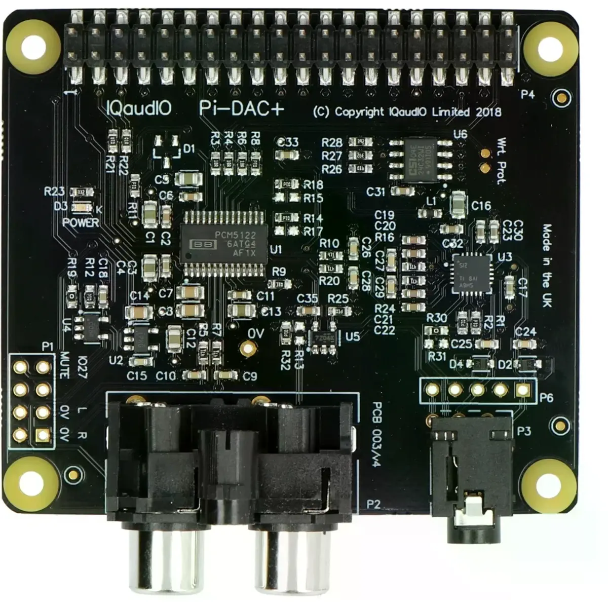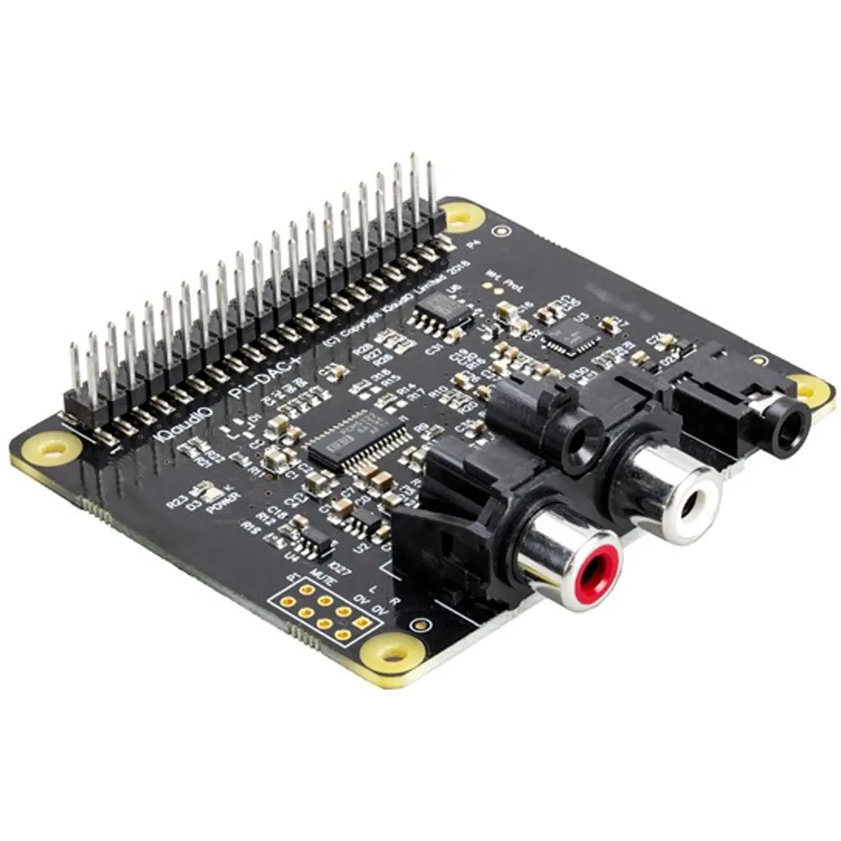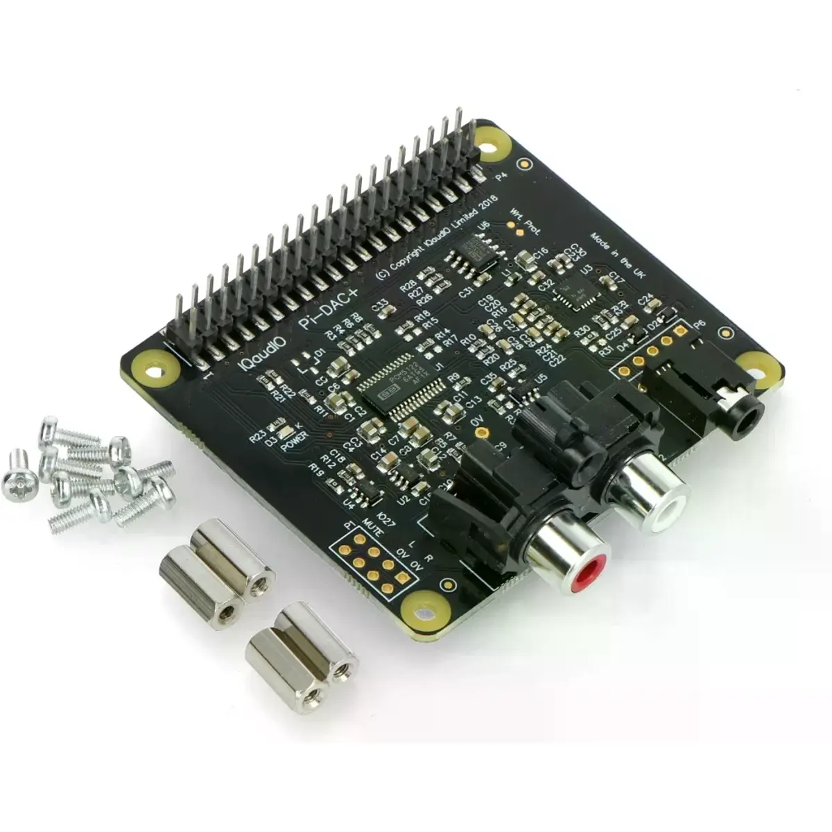 O IQaudio DAC+ é um HAT de áudio de alta fidelidade para Raspberry Pi, desenvolvido pela empresa britânica IQaudIO. Este acessório fornece áudio estéreo analógico de alta resolução graças ao DAC Texas Instruments PCM5122, um conversor de 32 bits com suporte até 24-bit / 192 kHz. A ligação ao Raspberry Pi é feita via interface I2S, garantindo baixa latência e reduzido impacto no desempenho do sistema, ao contrário das soluções baseadas em USB.