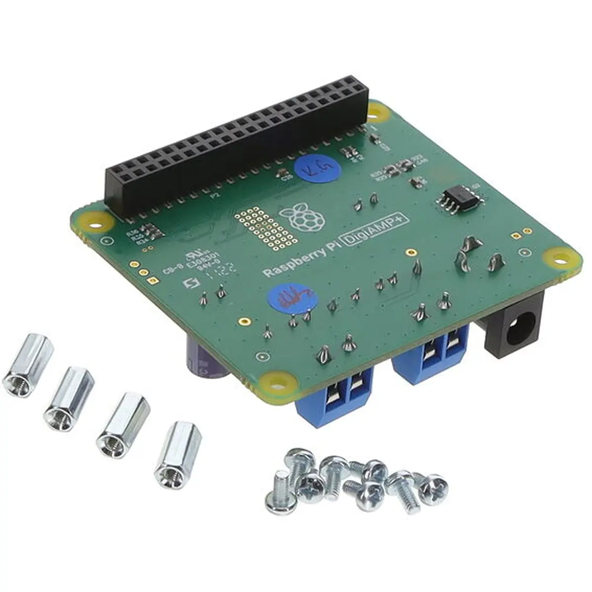 O Raspberry Pi DigiAMP+ é um DAC e amplificador de alto desempenho para o seu Raspberry Pi (qualquer modelo com conector de 40 pinos), oferecendo áudio Full HD de 24 bits e 192 kHz e amplificação com capacidade para alimentar 2 colunas de 35 W – um sistema HiFi completo com o tamanho de um baralho de cartas! Anteriormente conhecido como IQaudIO DigiAMP+.