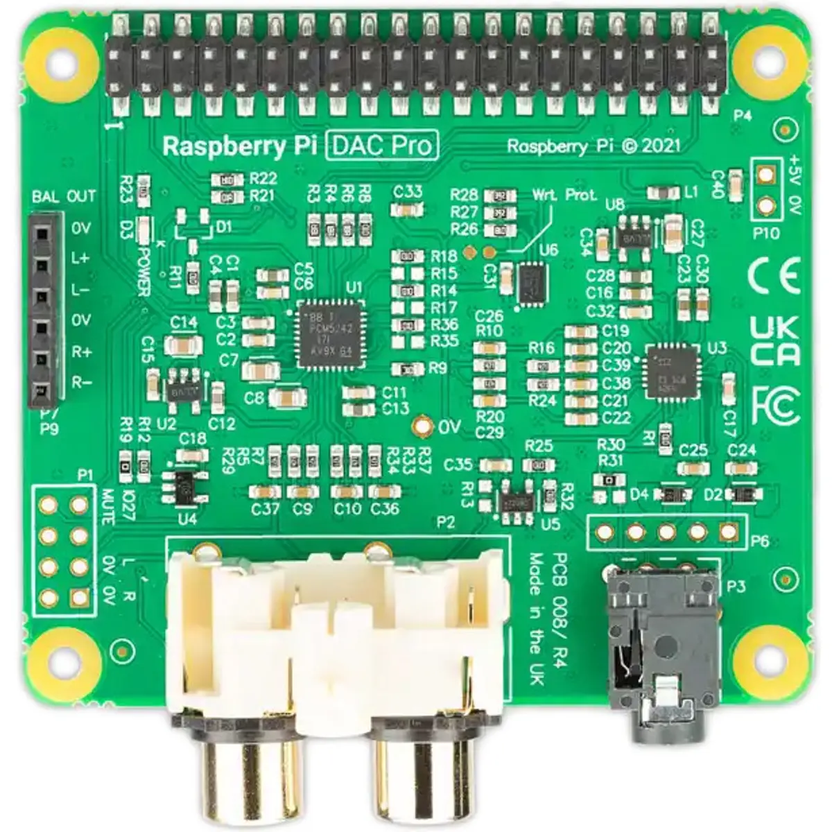 O Raspberry Pi DAC Pro, anteriormente conhecido como IQaudio DAC Pro, é a placa de som HAT de mais alta fidelidade da Raspberry Pi, concebida para oferecer áudio de qualidade profissional em qualquer modelo de Raspberry Pi com header GPIO de 40 pinos.