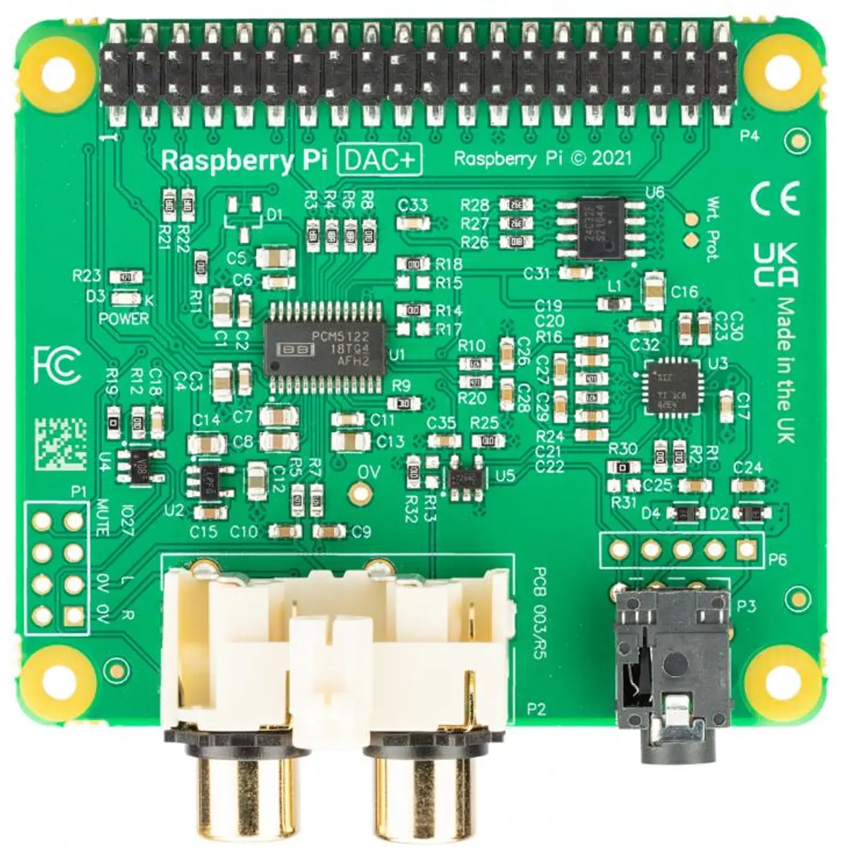 O Raspberry Pi DAC+, anteriormente conhecido como IQaudio DAC+, é um HAT (Hardware Attached on Top) de saída de áudio de baixo custo e alto desempenho para qualquer modelo de Raspberry Pi com um header GPIO de 40 pinos.