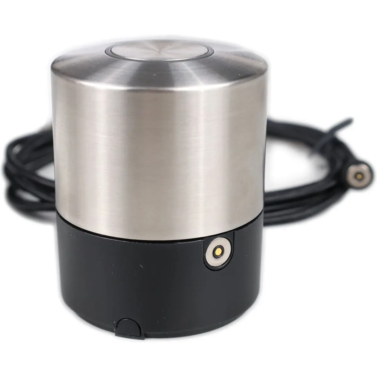 Corpo em aço inoxidável com acabamento escovado e dois anéis incluídos (preto e branco) para personalizar a aparência. O motor brushless contribui para um formato elegante e silencioso.