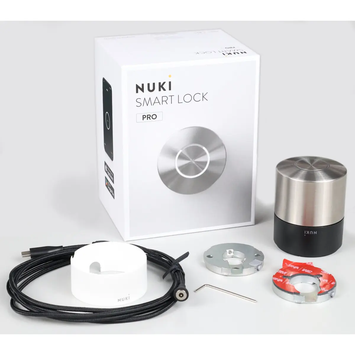 A Nuki Smart Lock Pro de 5ª geração é a solução Retrofit mais avançada da NUKI para modernizar a segurança da sua porta, sem recorrer a furos e nem substituição do cilindro existente. Com instalação discreta no interior da porta e design elegante em aço inoxidável, esta fechadura inteligente oferece uma combinação perfeita entre conveniência, tecnologia e estética.