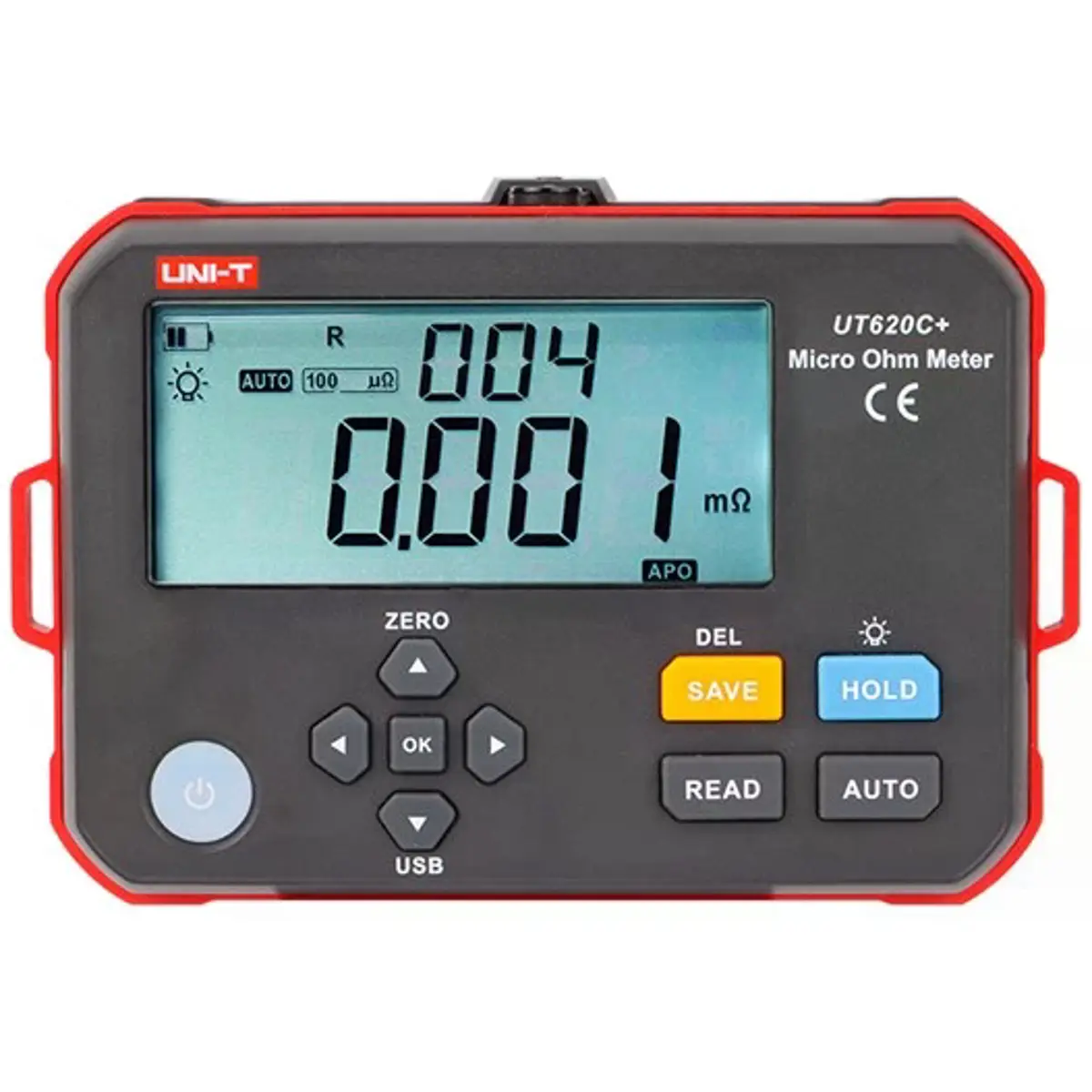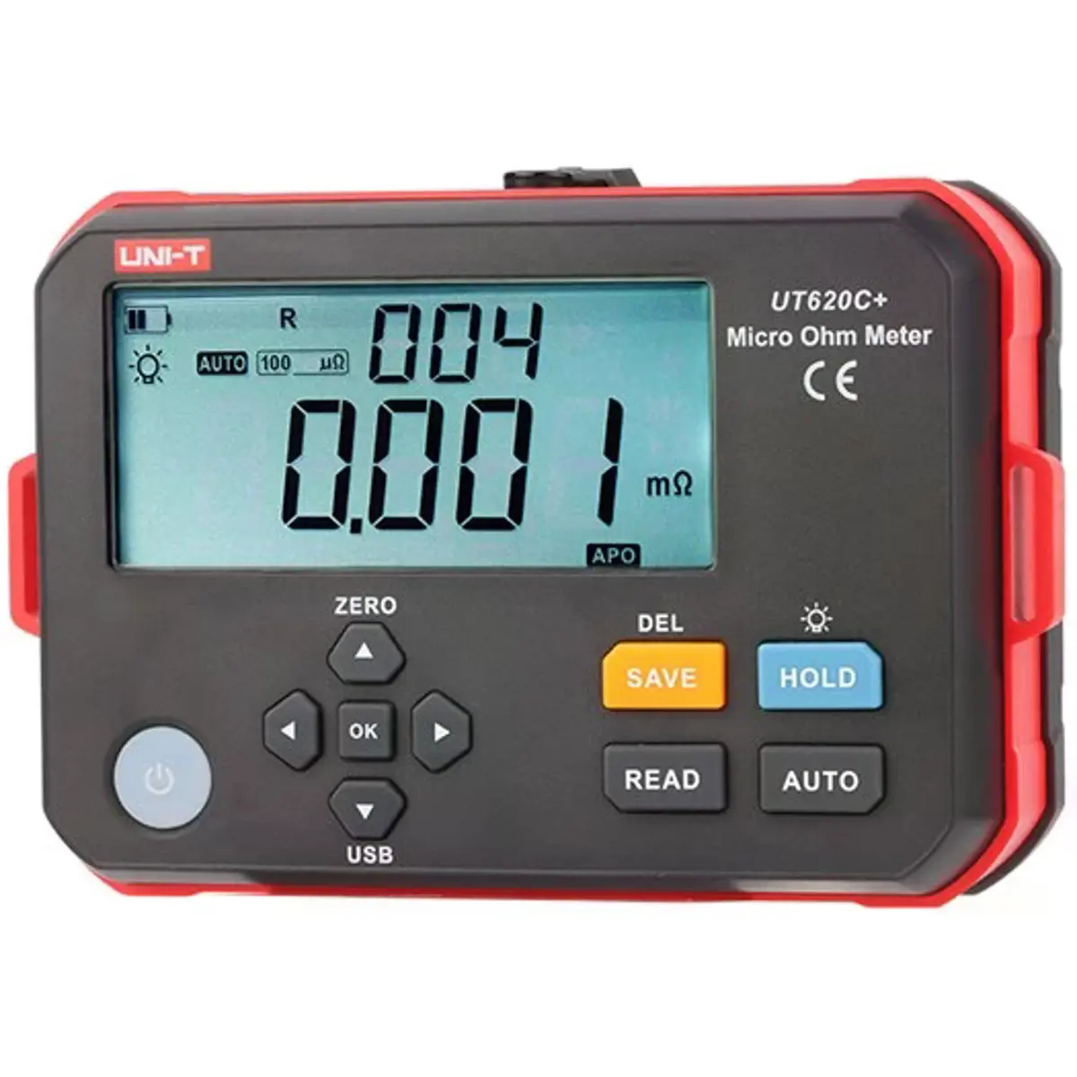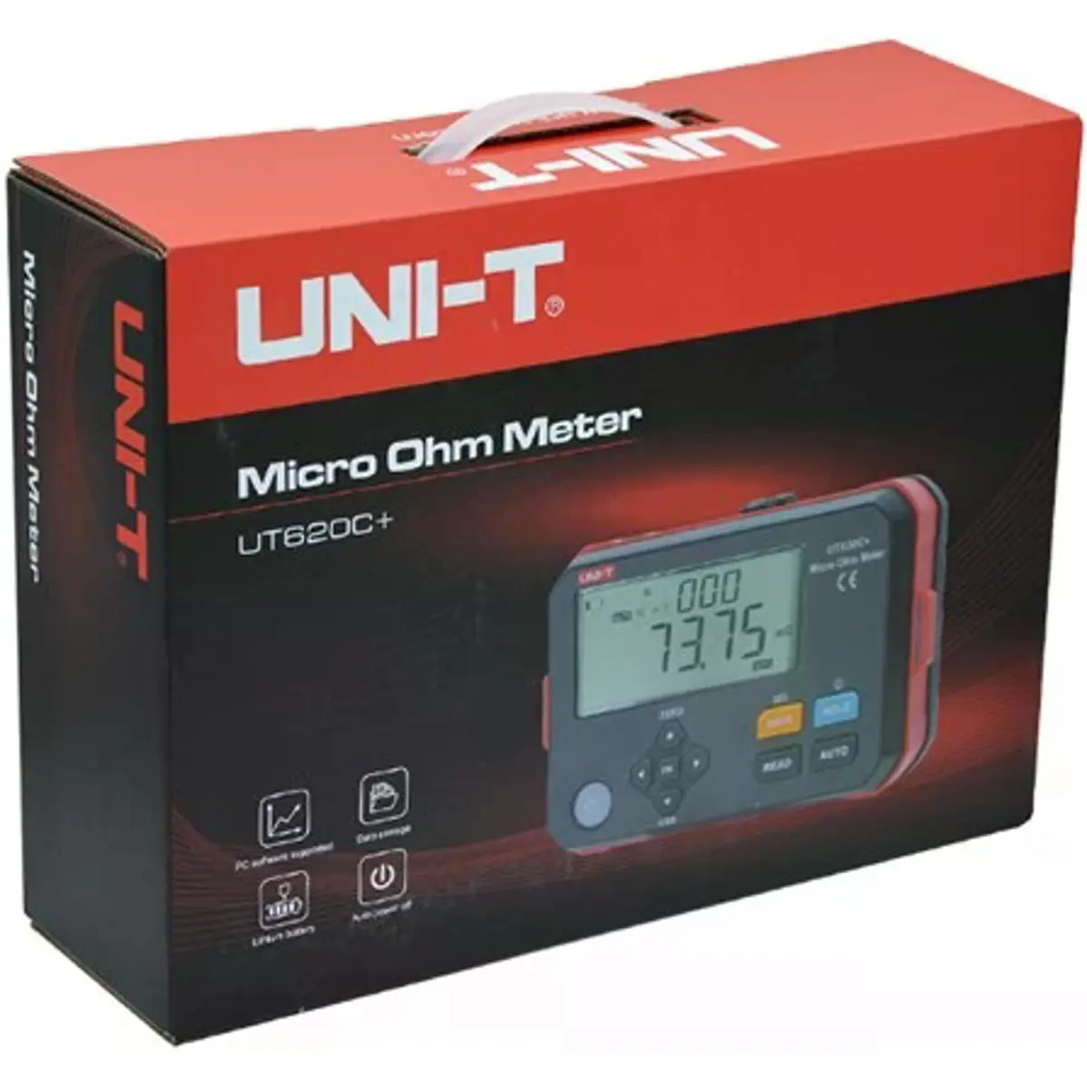 O UNI-T UT620C+ é um microohmímetro digital portátil de elevada precisão, ideal para medição de resistências muito baixas a elevadas, desde microohms até centenas de kilo-ohms. Especialmente concebido para teste e manutenção de grandes equipamentos como motores, estatores e ligações soldadas em veículos híbridos e elétricos. Utilizado em sistemas de telecomunicações, distribuição elétrica, indústria petroquímica e sistemas de aterramento.