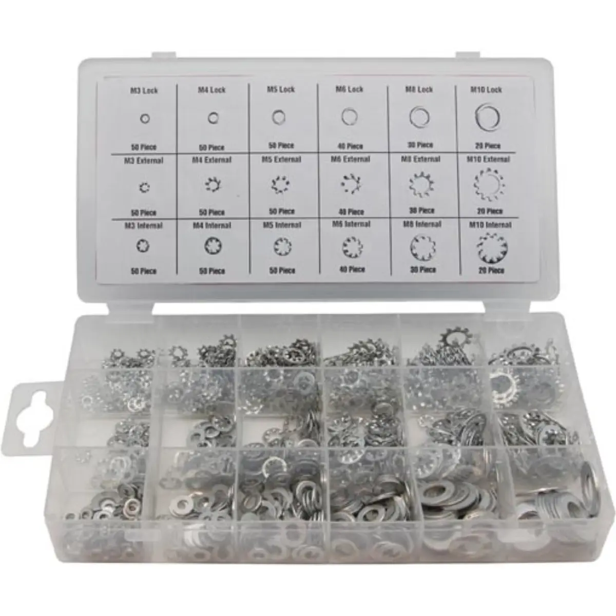Toolland HAS03 - Conjunto de 720 anilhas dentadas e de mola em aço [M3..M10]
