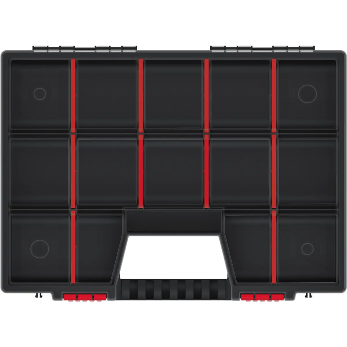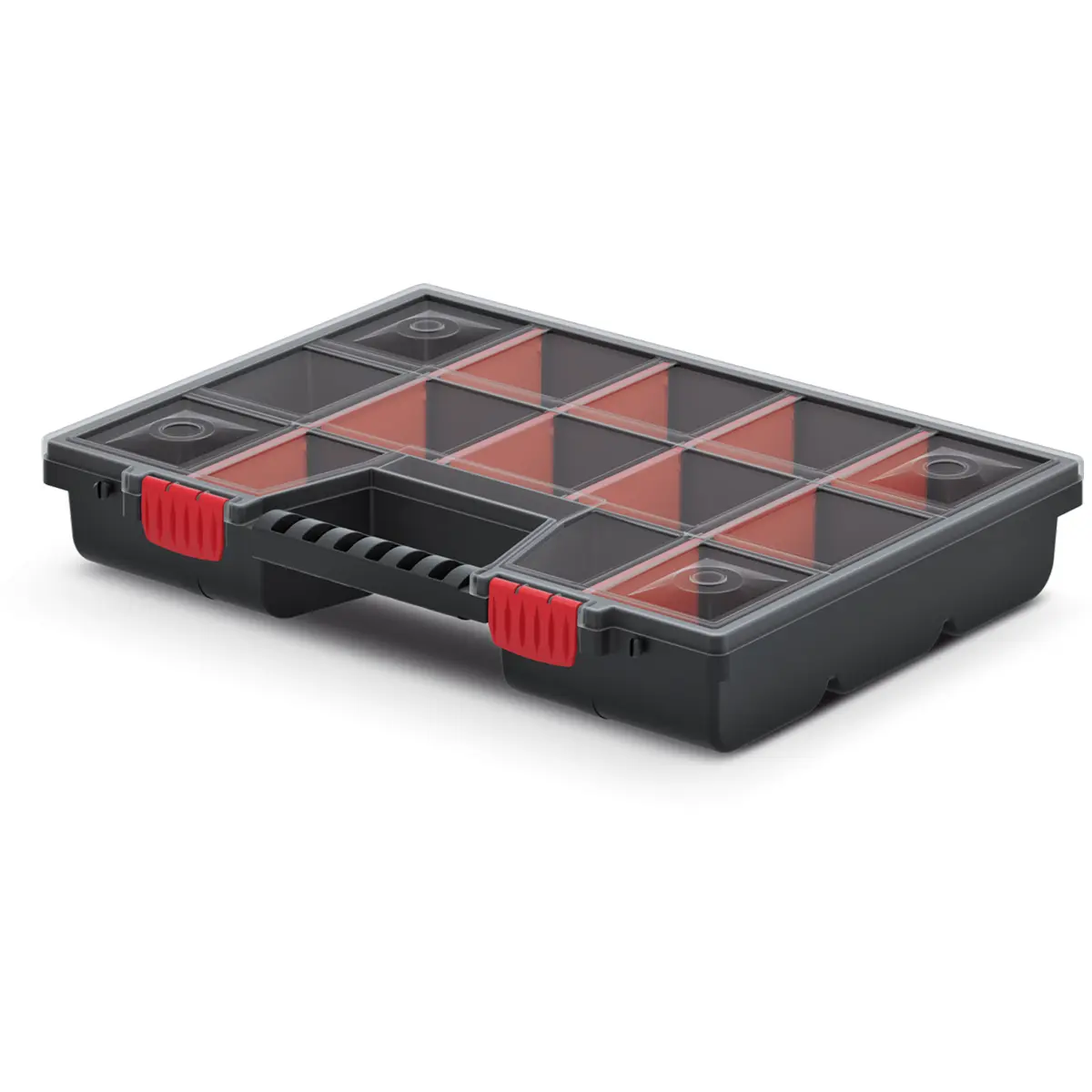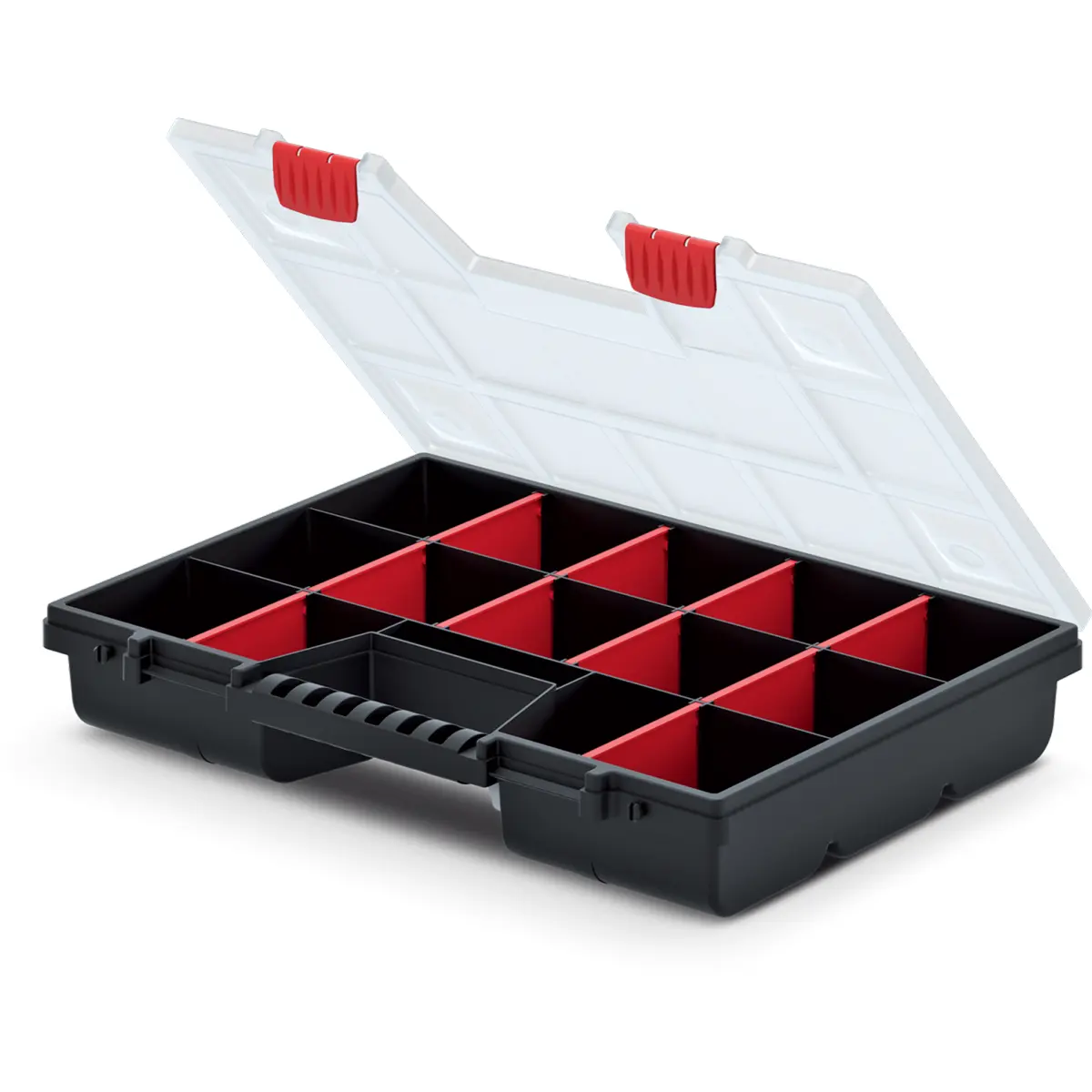 Este organizador é um elemento indispensável para qualquer entusiastas e profissionais de bricolage. Torna mais fácil manter as peças pequenas em ordem, por exemplo, parafusos, porcas ou tampas. Equipado com divisórias, permitindo que organize de acordo com suas necessidades.