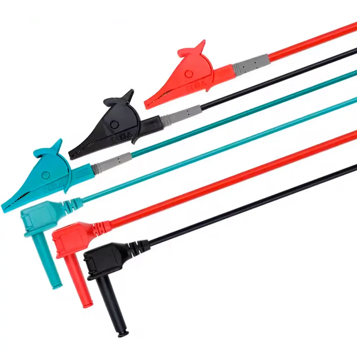 Conjunto de cabos de teste de substituição para os equipamentos de medição UNI-T das séries UT511 a UT513A. Inclui garras tipo crocodilo com isolamento, ideais para testes de resistência de isolamento e outras medições industriais. Compatível com as normas de segurança até CAT IV.