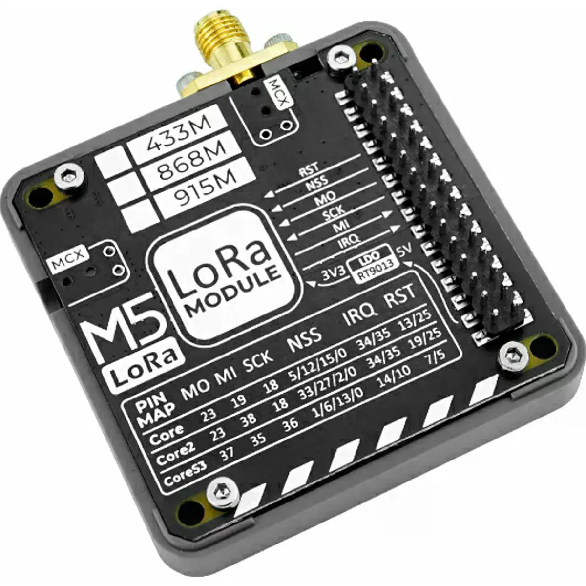 O M029-V11 é um módulo de comunicação LoRa (frequência de operação: 868 MHz) pertencente à série de módulos empilháveis M5Stack, baseado no módulo Ra-01H (chip SX1276). Está equipado com uma antena SMA integrada e inclui ainda duas interfaces de contacto (pads) para antenas MCX, permitindo ao utilizador alternar facilmente entre diferentes tipos de antenas conforme as suas necessidades.
