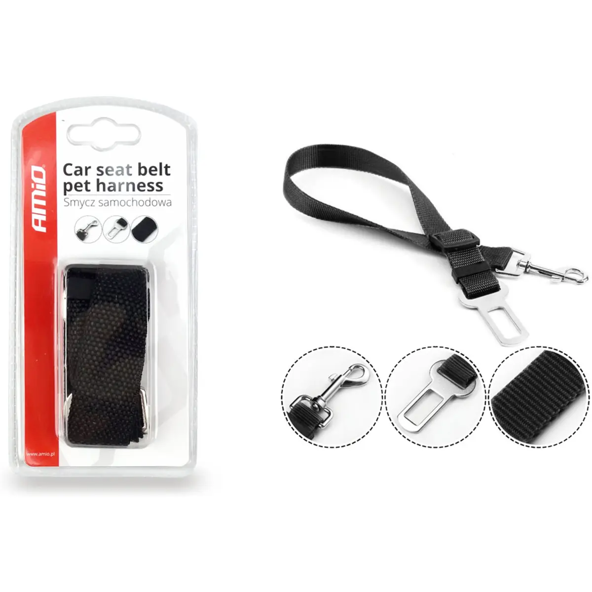 Este cinto irá prender o seu animal de estimação enquanto estiver na estrada, uma vez que tem um gancho de um lado para prender à coleira e do outro lado uma fivela que prende à fixação do cinto de segurança do carro.