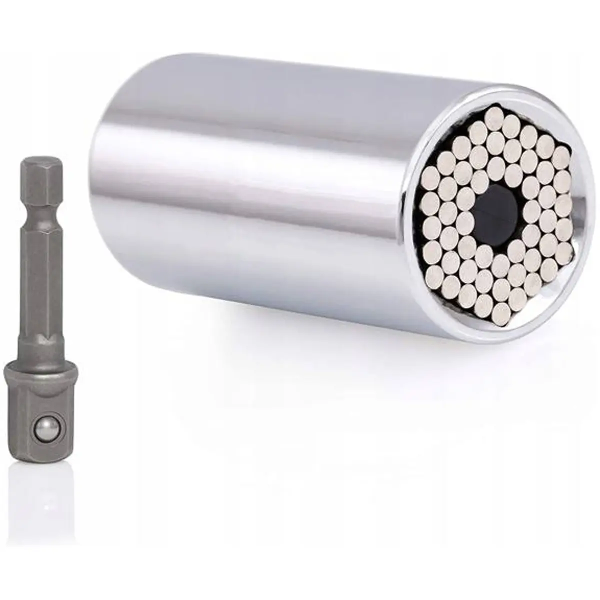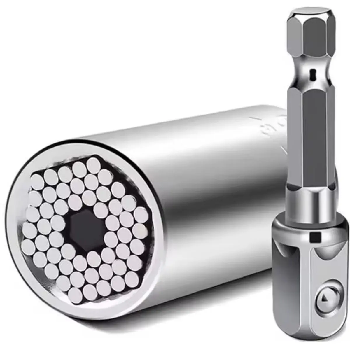 Esta chave de caixa universal foi concebida para se adaptar automaticamente a diferentes formatos de parafusos, porcas e fixações, graças aos pernos internos que se moldam ao contorno da peça. Ideal para profissionais e entusiastas do "faça você mesmo", permite trabalhar com uma vasta gama de elementos de fixação com um só acessório.