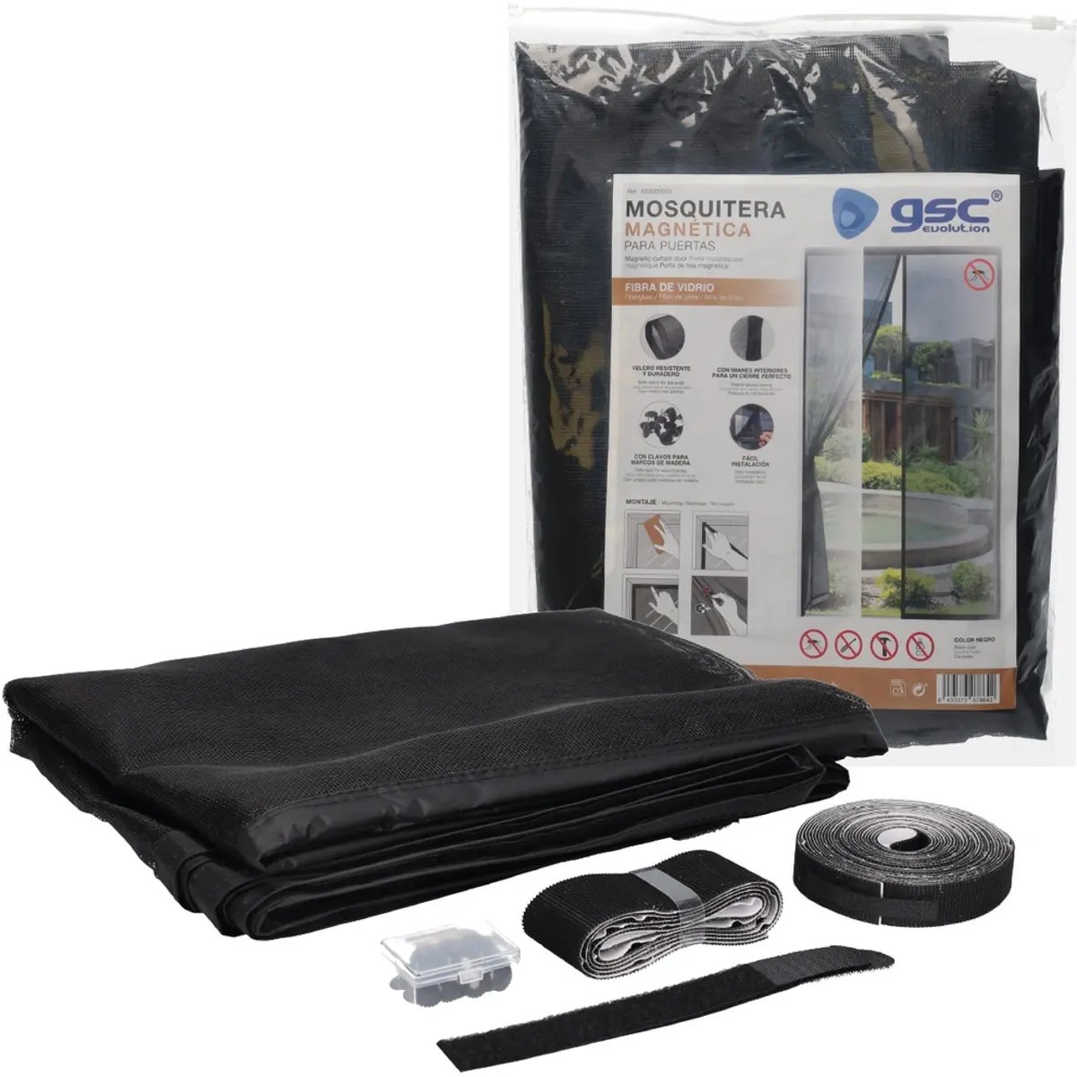 GSC Evolution - Rede mosquiteira magnética fibra de vidro + velcro para portas 220x100cm - Preto