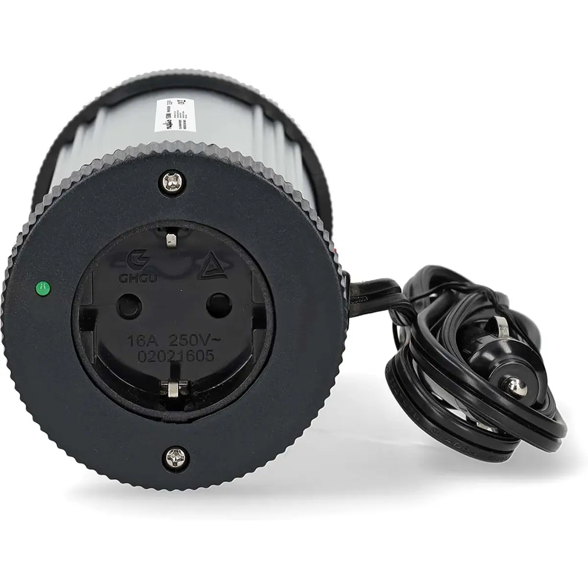 Este inversor Nedis foi concebido para satisfazer as exigências energéticas de um estilo de vida móvel, oferecendo uma potência contínua de 150 W e potência de pico até 300 W. Ideal para uso em automóveis, caravanas, barcos ou campismo, permite alimentar dispositivos de 230 V AC a partir de uma fonte de 12 V DC.