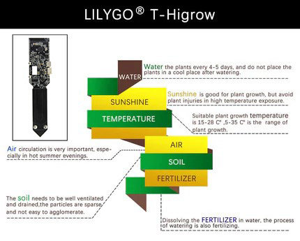 O LILYGO T-Higrow [Q221] é um módulo de monitorização ambiental inteligente, concebido para aplicações de jardinagem, agricultura de precisão e projetos IoT. Baseado no microcontrolador ESP32, integra sensores de humidade do solo (capacitivo e resistivo), temperatura, humidade do ar, pressão atmosférica e luz ambiente.