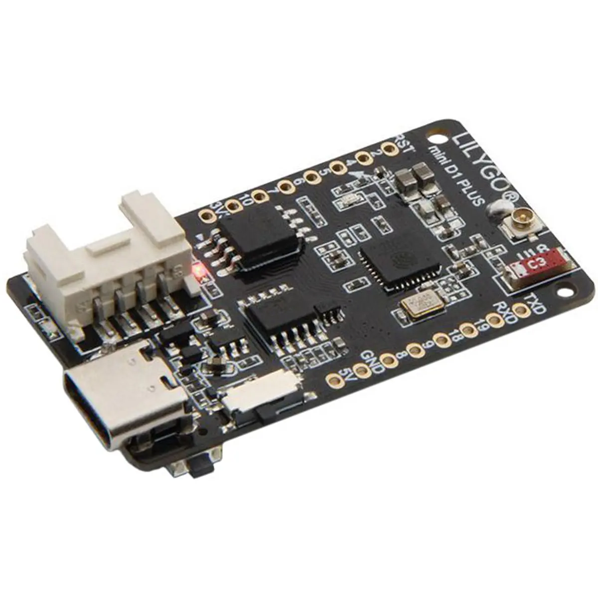 A TTGO T-OI Plus é uma placa de desenvolvimento compacta baseada no microcontrolador ESP32-C3, com arquitetura RISC-V de 32 bits, conectividade Wi-Fi e Bluetooth 5. É ideal para projetos de IoT que exigem baixo consumo energético, múltiplas interfaces e integração fácil com sensores através de conetores Grove.