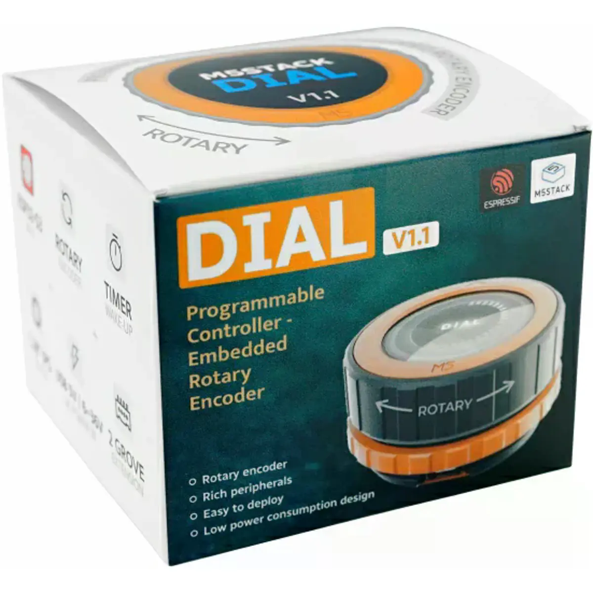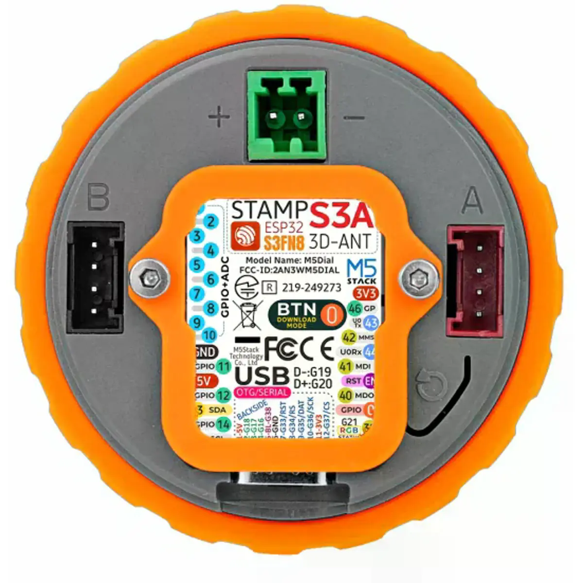 O M5Stack Dial v1.1 é uma placa de desenvolvimento embutida, multifuncional e de alto desempenho, que representa uma atualização completa do modelo Dial original. Esta nova versão integra o StampS3A como controlador principal, proporcionando maior potência de processamento e estabilidade ao sistema. Foram ainda otimizadas a antena do módulo central e os botões, melhorando significativamente o desempenho da comunicação sem fios e a experiência de interação do utilizador.