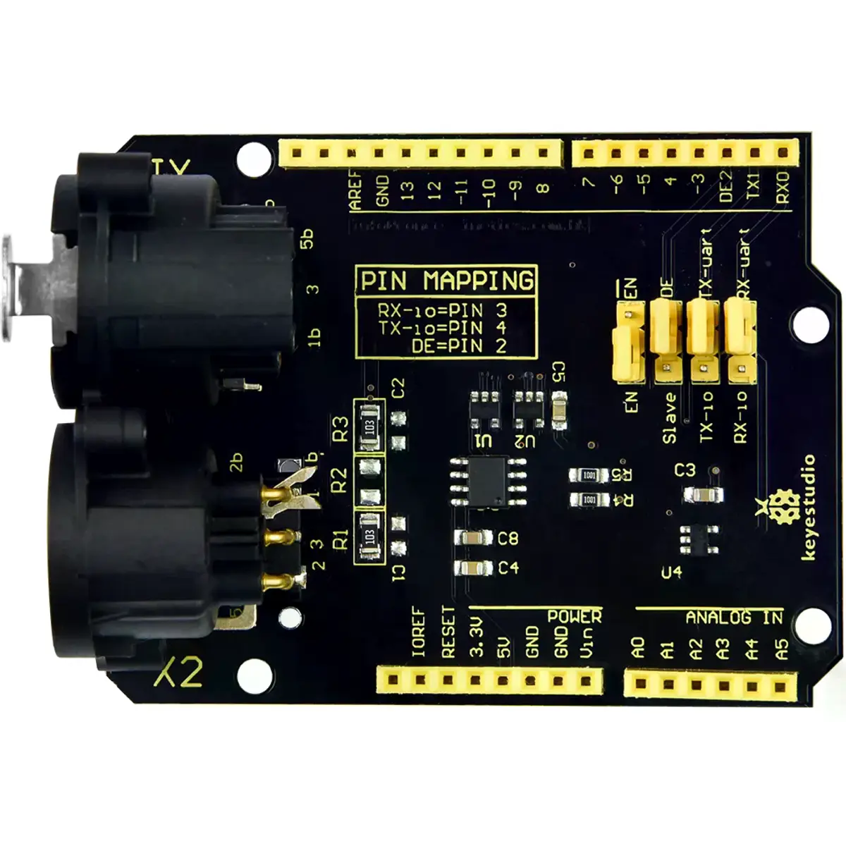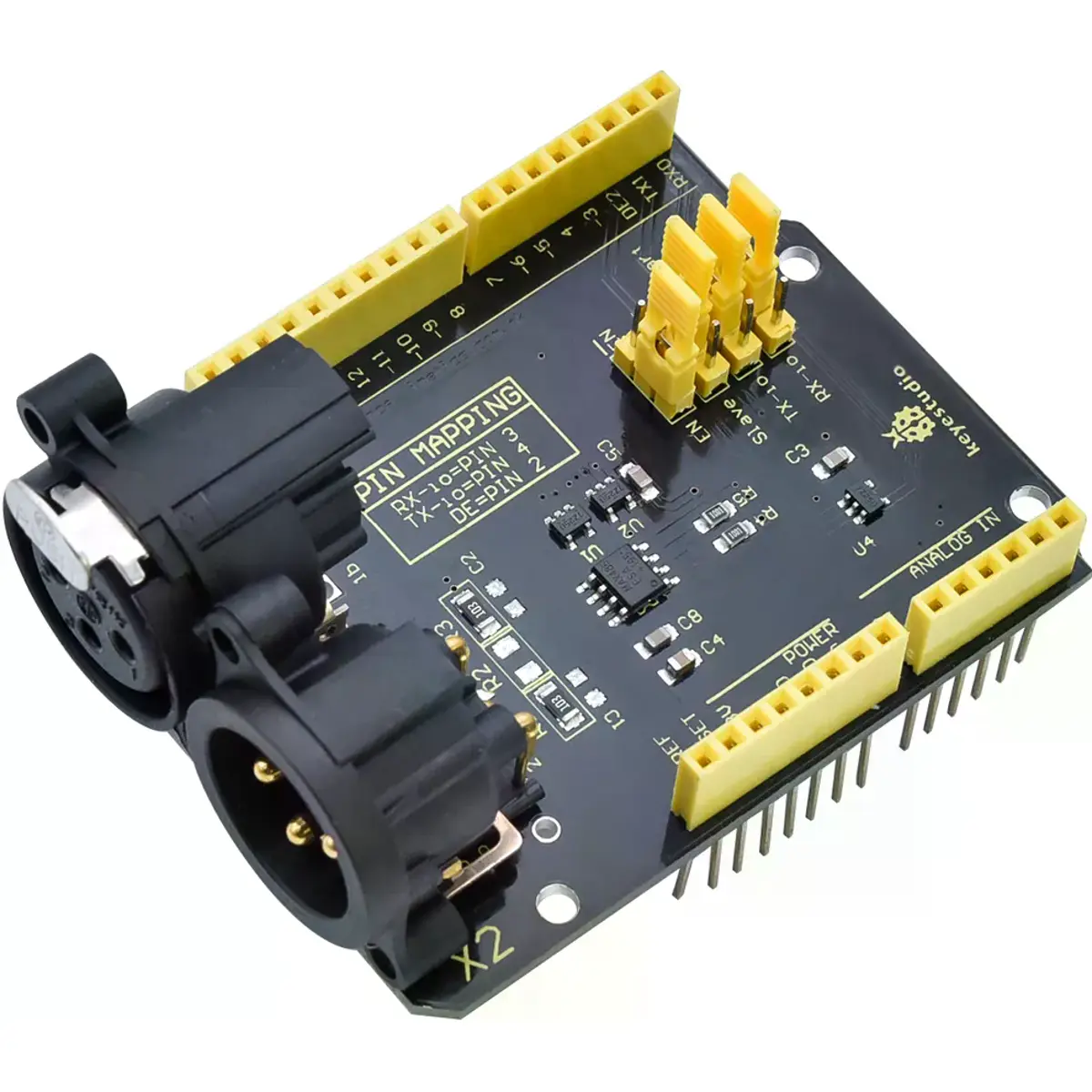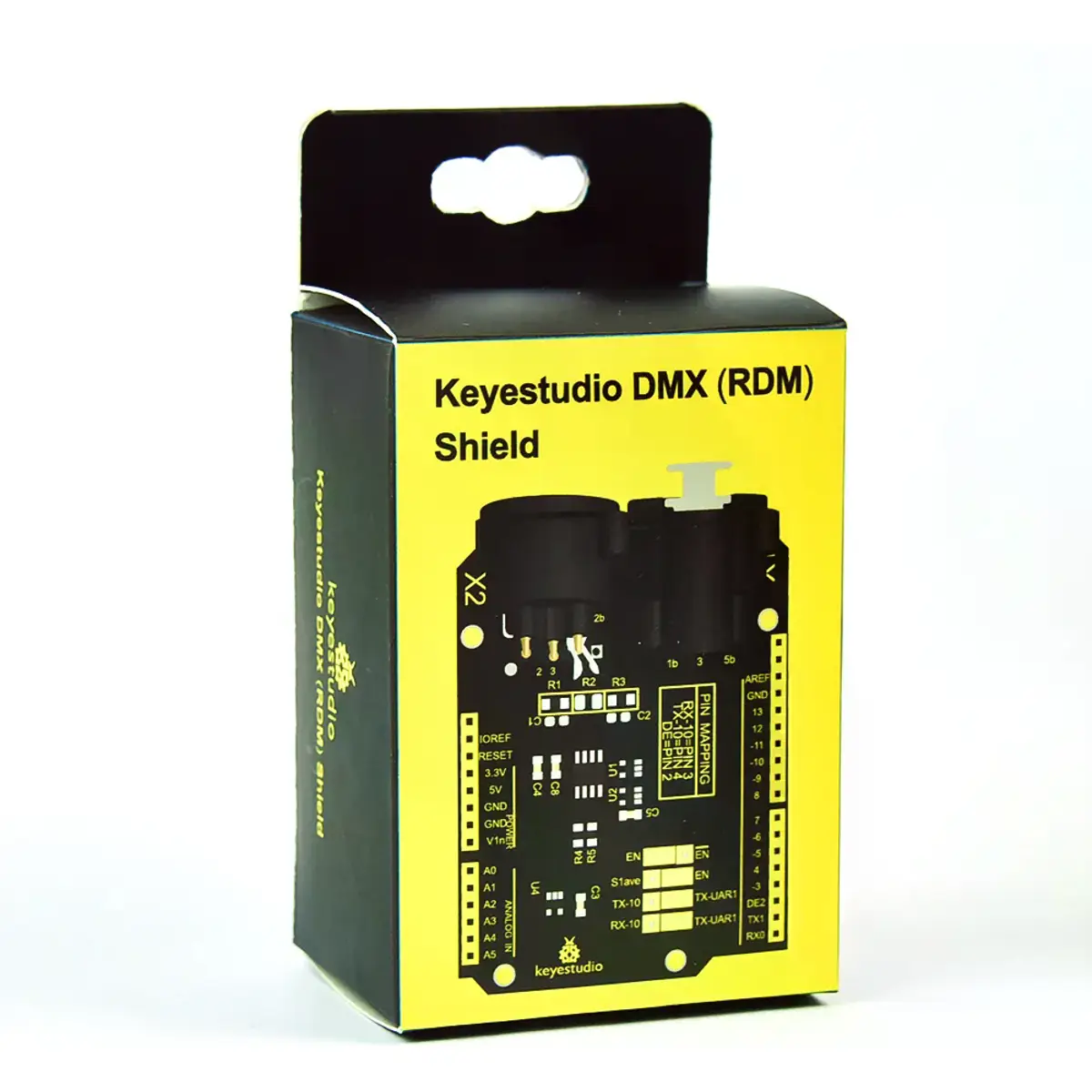 Shield compatível com Arduino UNO, permite enviar e receber sinais DMX512 e RDM. Ideal para controlo de iluminação, colunas de som, máquinas de fumo, entre outros dispositivos de palco ou entretenimento. Pode ser programado em linguagem Arduino ou em linguagem C.