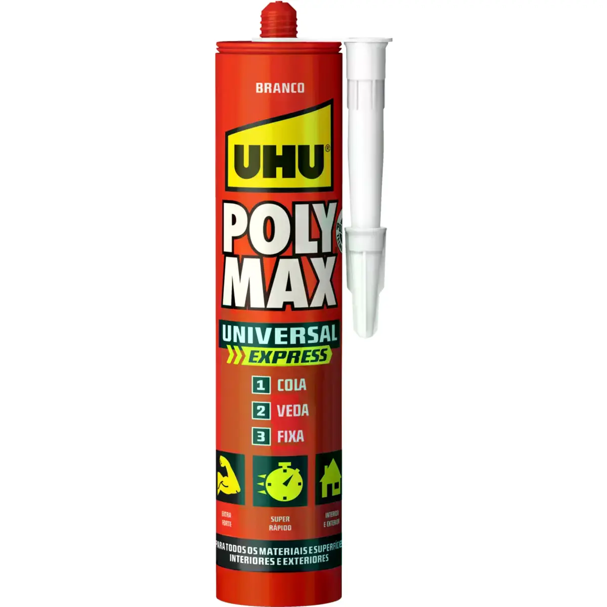 Poly Max® Universal Express: cola e veda de montagem universal com base na tecnologia SMP exclusiva. Ideal para colar, fixar e vedar praticamente todos os materiais de construção em diversas superfícies (lisas, porosas e não porosas). Extra forte, resistente às intempéries e indicado tanto para interiores como exteriores — inclusive debaixo de água.
