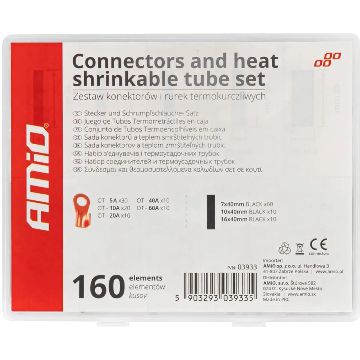 AMiO - Sortido de terminais olhal abertos em cobre e mangas termo-retrateis [160 pcs]