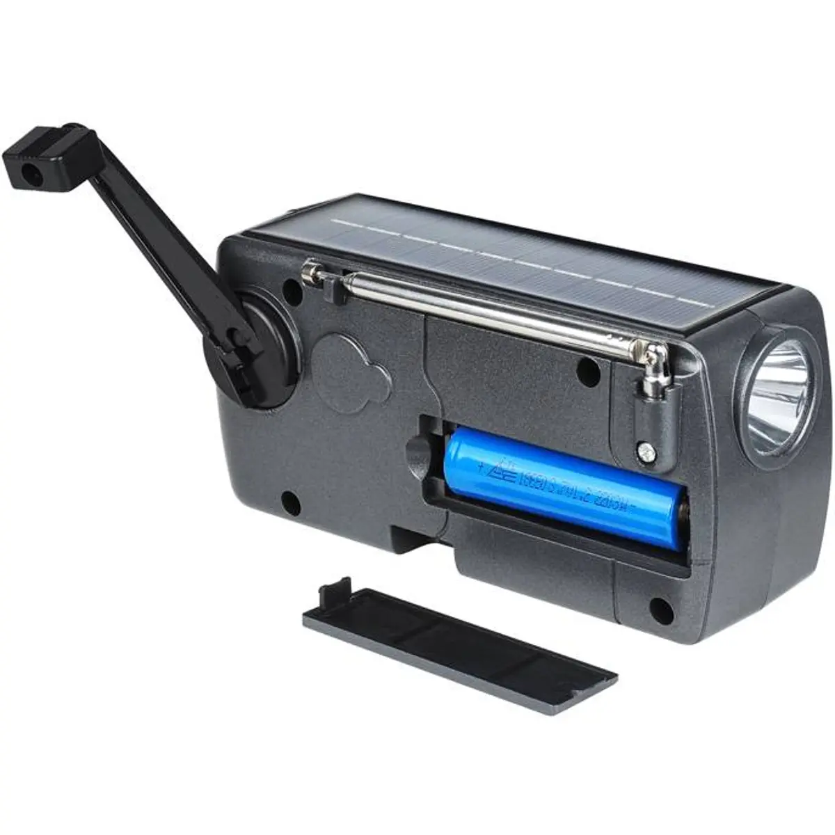 Rádio portátil multifunções para atividades ao ar livre, com alimentação versátil (USB, painel solar ou manivela) que assegura autonomia em campismo e emergências. Receptor multibanda FM/AM/SW com bom alcance, antena telescópica e leitor de USB/microSD para reprodução de música. Inclui lanterna LED integrada, painel solar, dínamo e várias opções de conectividade: USB-A, micro USB, AUX e leitor de cartões microSD. Bateria interna de lítio de 1200 mAh fornece energia adicional; compacto, robusto e ideal para uso em zonas sem alimentação elétrica.