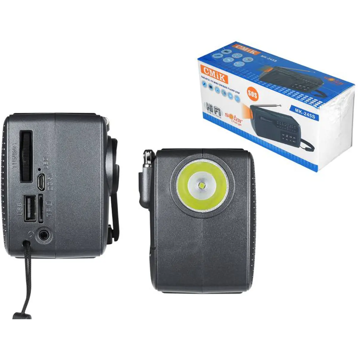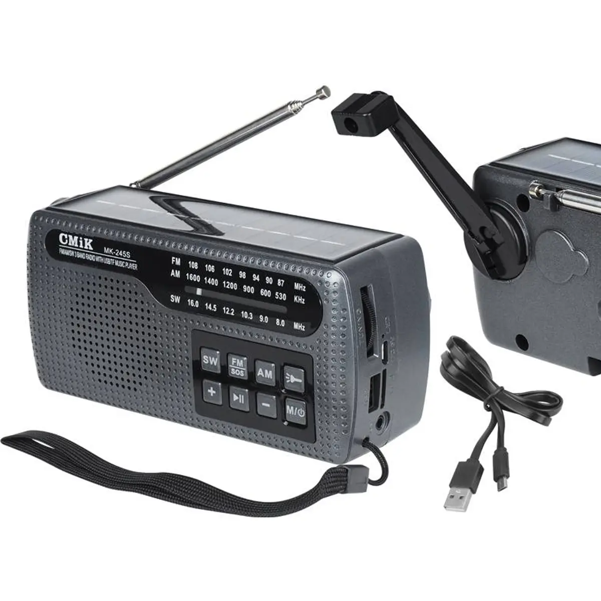 CMiK MK-245S - Rádio Portátil multifunções FM/AM/SW c/ carregamento Solar e manivela (dínamo)