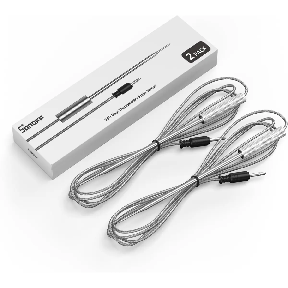 O SONOFF MPS01 é um conjunto de duas sondas de temperatura adicionais, concebidas especificamente para o termómetro inteligente SONOFF BMT01. Estas sondas permitem monitorizar simultaneamente diferentes alimentos ou zonas de cozedura, garantindo um controlo preciso da temperatura em diversas preparações culinárias.