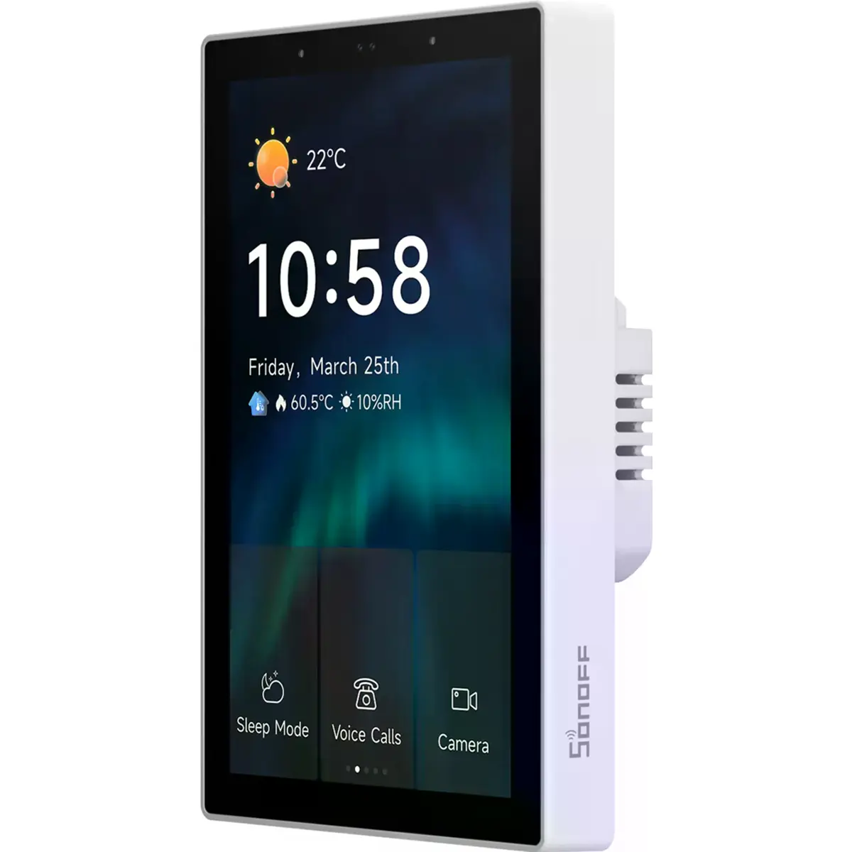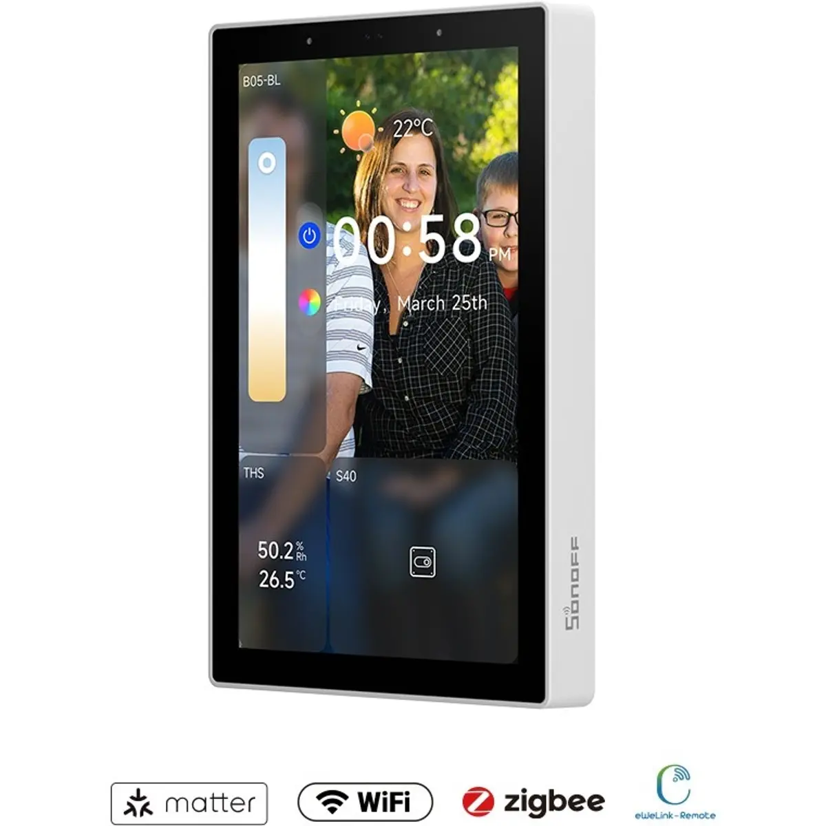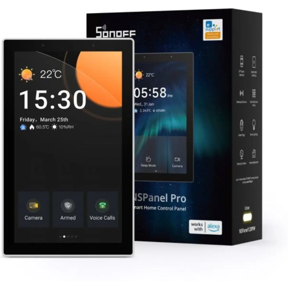 O SONOFF NSPanel Pro 120 é um painel de controlo inteligente multifuncional concebido para integrar e gerir dispositivos domésticos de forma intuitiva e centralizada. Com um ecrã tátil de 4,7", hub Zigbee 3.0 incorporado e compatibilidade com o protocolo Matter, este painel proporciona uma experiência fluida na gestão de iluminação, climatização, segurança, consumo energético, câmaras e muito mais. É possível criar widgets personalizáveis, modos de segurança, visualizar imagens ao vivo de câmaras IP, configurar termóstatos e realizar chamadas entre painéis ou com o smartphone.