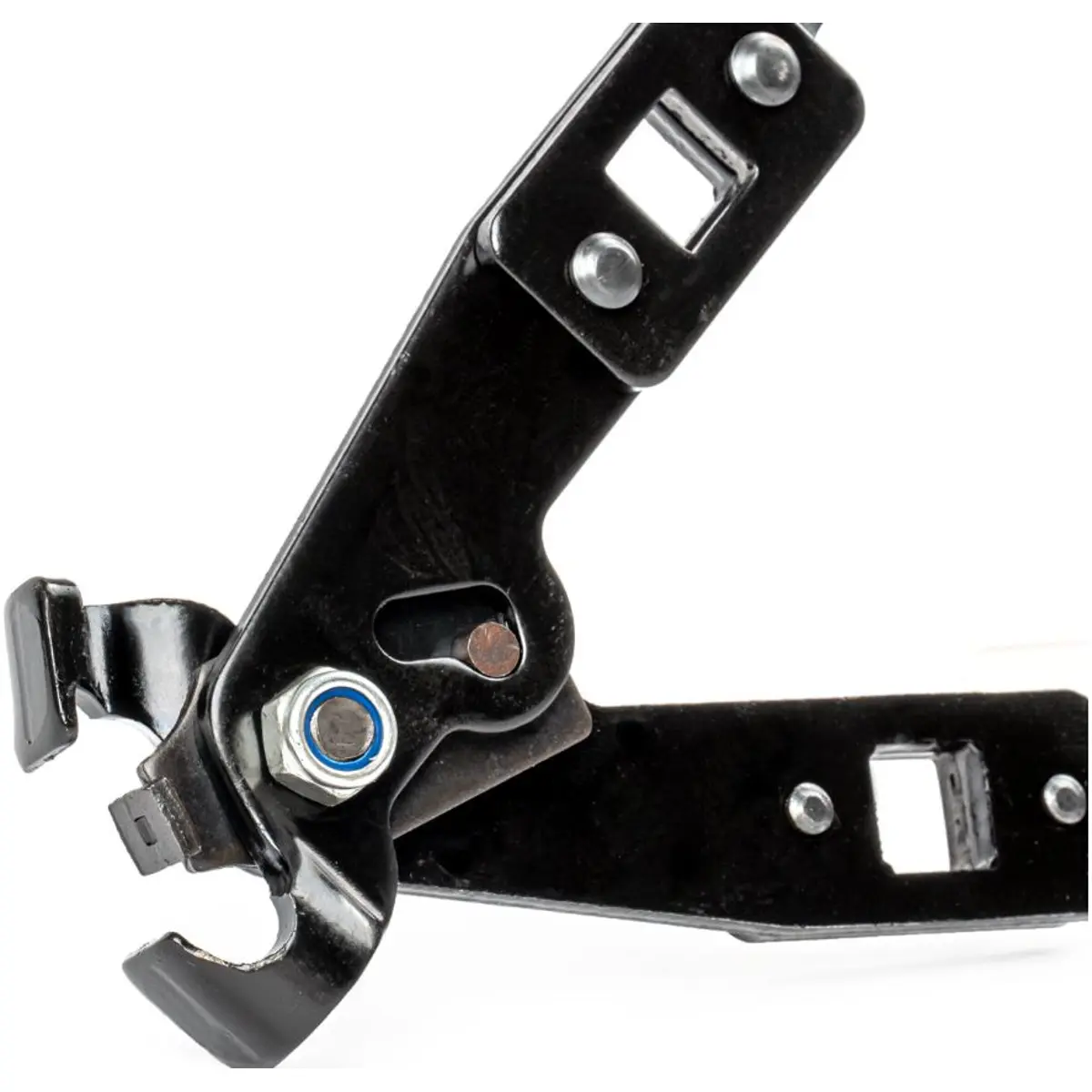 Este alicate profissional para abraçadeiras de fole de junta permite remover e instalar braçadeiras com fechos de bloqueio em veículos. O sistema de prensa cravando os fechos garante uma ligação permanente e segura. Compatível com linhas de óleo e de combustível, aceita chave de 1/2 polegada para maior força de cravação e pode ser usado com torquímetro para atingir o binário desejado (Nm).