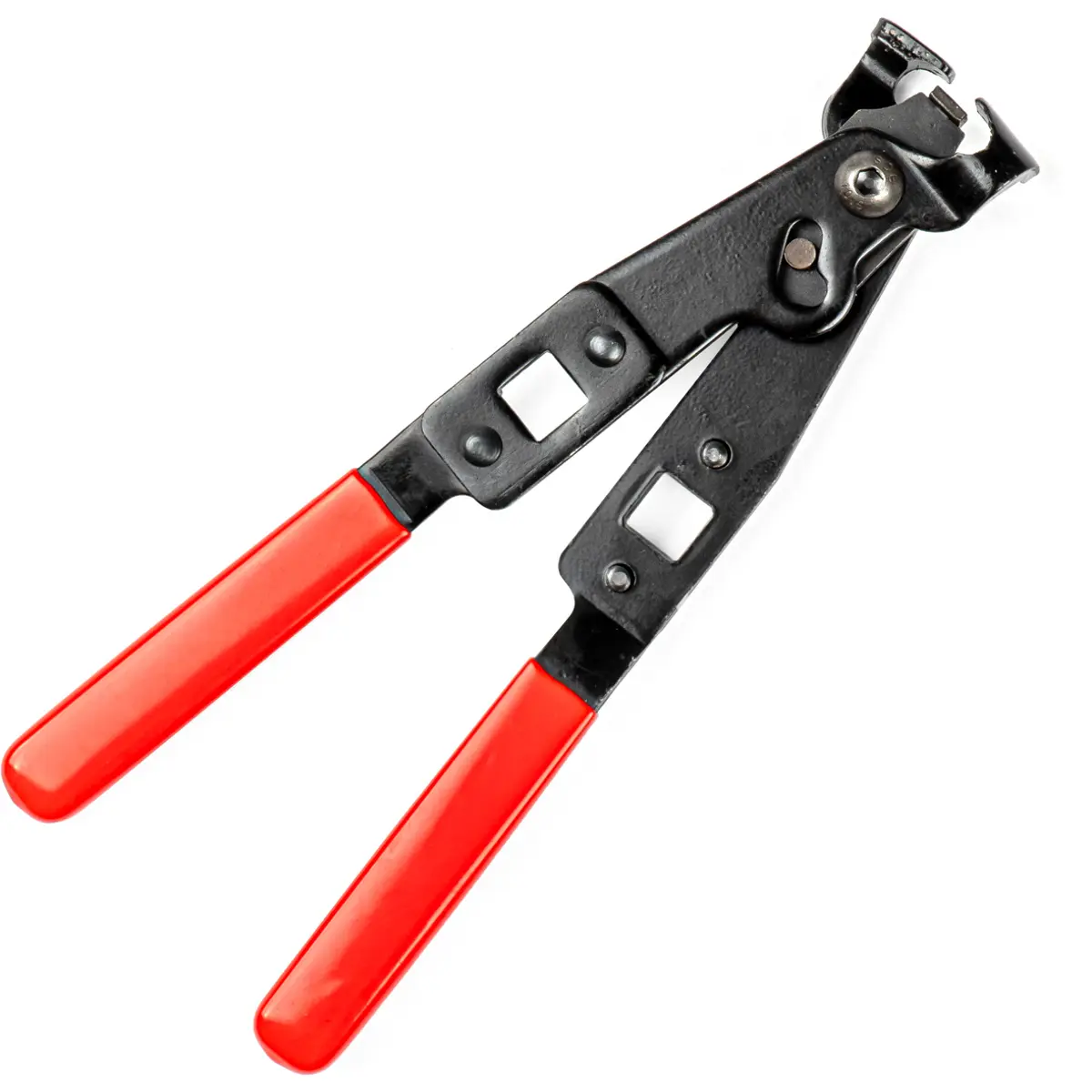 Ferramenta profissional de elevada qualidade, concebida para remover e instalar braçadeiras de guarda de juntas em veículos. Este alicate permite fixar braçadeiras de sobreposição com fechos de bloqueio e, através de um sistema de prensa, cravar os fechos para uma ligação permanente e segura.