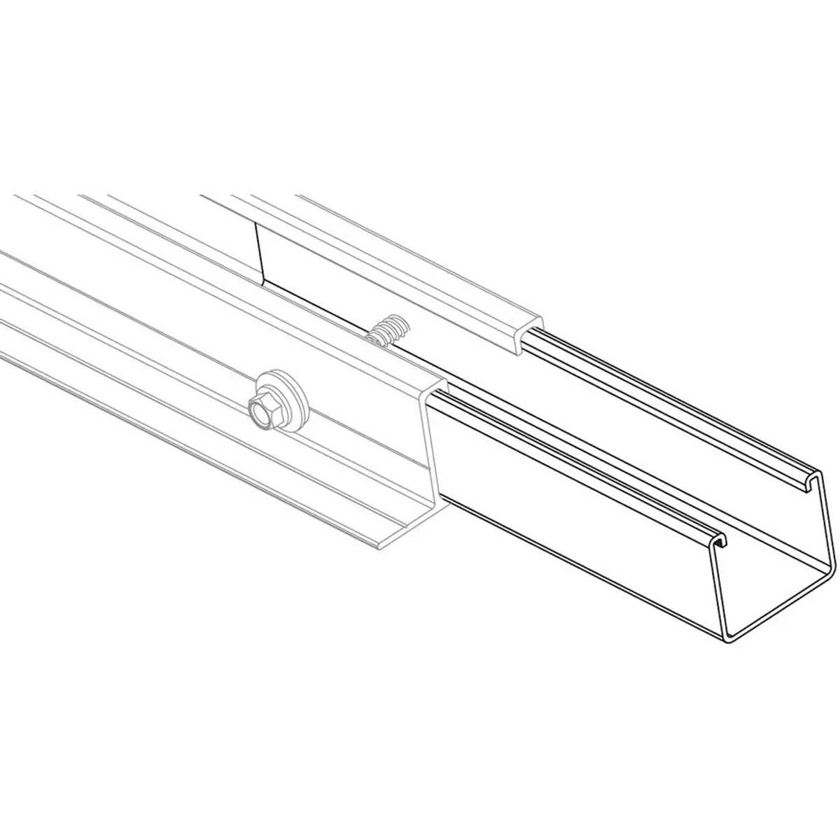 Conjunto de duas uniões em alumínio para perfis coplanares com fixação direta, compatível com perfis PSA-A, através de um canal central que facilita o acoplamento entre perfis sem interferir nas funções. A fixação usa parafusos autoperfurantes DIN-7504-K em aço inoxidável A2-70, assegurando resistência à corrosão. O kit inclui duas uniões de 200 mm e quatro parafusos, oferecendo montagem estável para ligações longitudinais entre perfis e mantendo a linha estrutural.