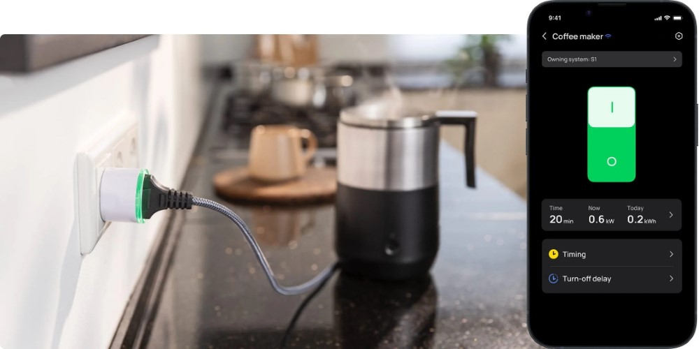 Quando as tomadas inteligentes fazem parte do seu sistema solar de varanda, monitorizam o consumo energético dos aparelhos e permitem que o microinversor distribua automaticamente a quantidade exata de energia necessária para cada um deles. O excedente é armazenado na bateria, garantindo que nada se desperdiça.