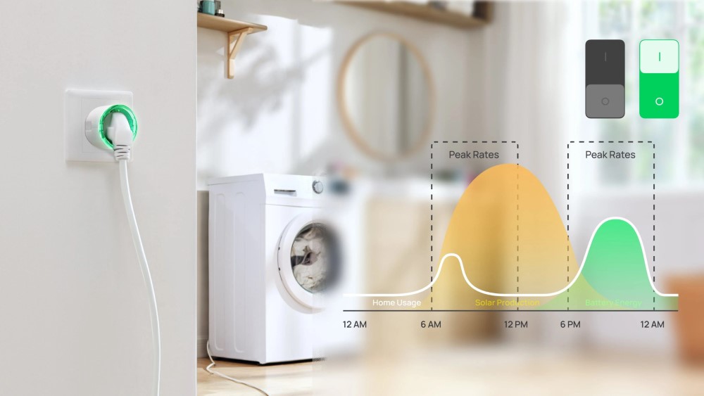 Depois de instalar a bateria STREAM Series e o Smart Meter compatível, os utilizadores podem ligar os aparelhos às tomadas de parede através das Smart Plugs compatíveis. Isto possibilita o controlo remoto ligar/desligar e a programação de horários na aplicação EcoFlow — reduzindo ao mínimo o desperdício da energia solar.
