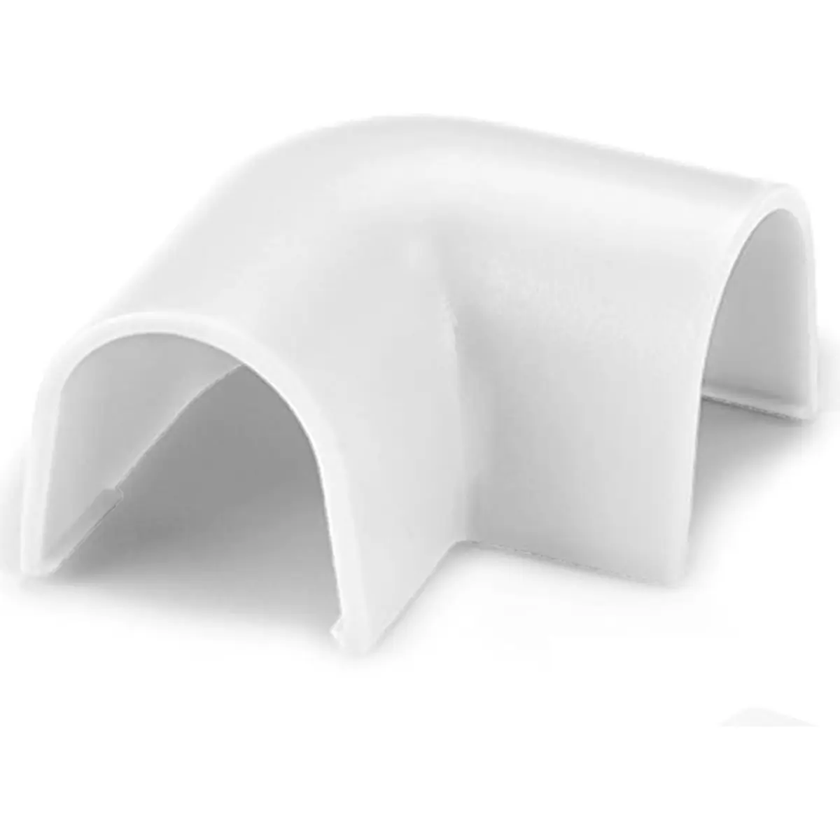 União plana de 90° para calha flexível, compatível com o mod. 2202 (10,5x10 mm). Cor branca. Fabricada com material isolante e autoextinguível, cumpre a norma UNE-EN-60695. Proporciona um acabamento visual mais integrado e uma gestão de cabos mais ordenada nas instalações elétricas, com montagem simples e segurança reforçada pela proteção térmica do material.