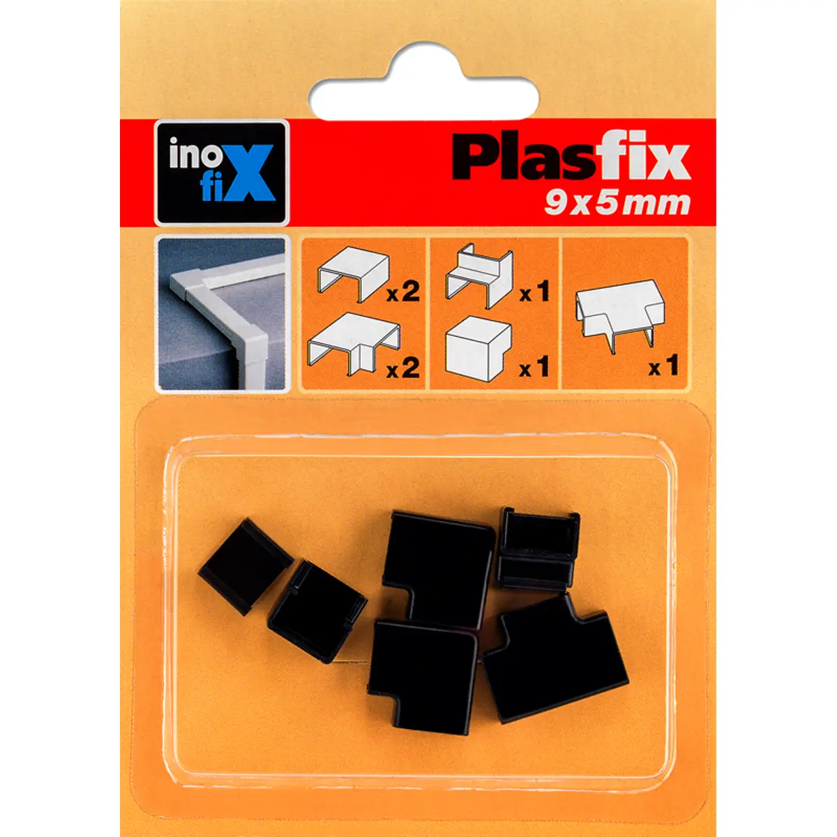 Inofix 3390-8 - Sortido de 7 acessórios para calha técnica 9x5mm - Preto