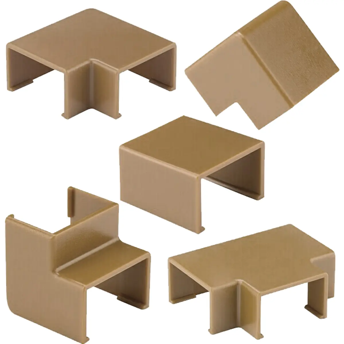 Conjunto de 7 acessórios para calhas técnicas, na cor Carvalho, compatível com calhas de 16 x 10 mm. Inclui 2 uniões direitas, 2 uniões planas 90°, 1 união côncava 90°, 1 união convexa 90° e 1 união em T. Oferece acabamento integrado, proteção IPXX5, temperatura de serviço entre -5ºC e +60ºC, e conformidade com CE, RoHS e UNE-EN-50085-1:2006 e UNE-EN-50085-2-1:2008 e diretivas 73/23 CEE e 93/68 CEE.