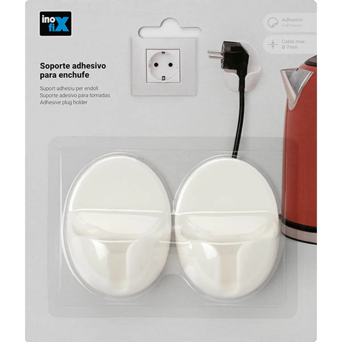 Inofix 7500-2 - Suporte adesivo de parede para tomadas [2 unid.] - branco