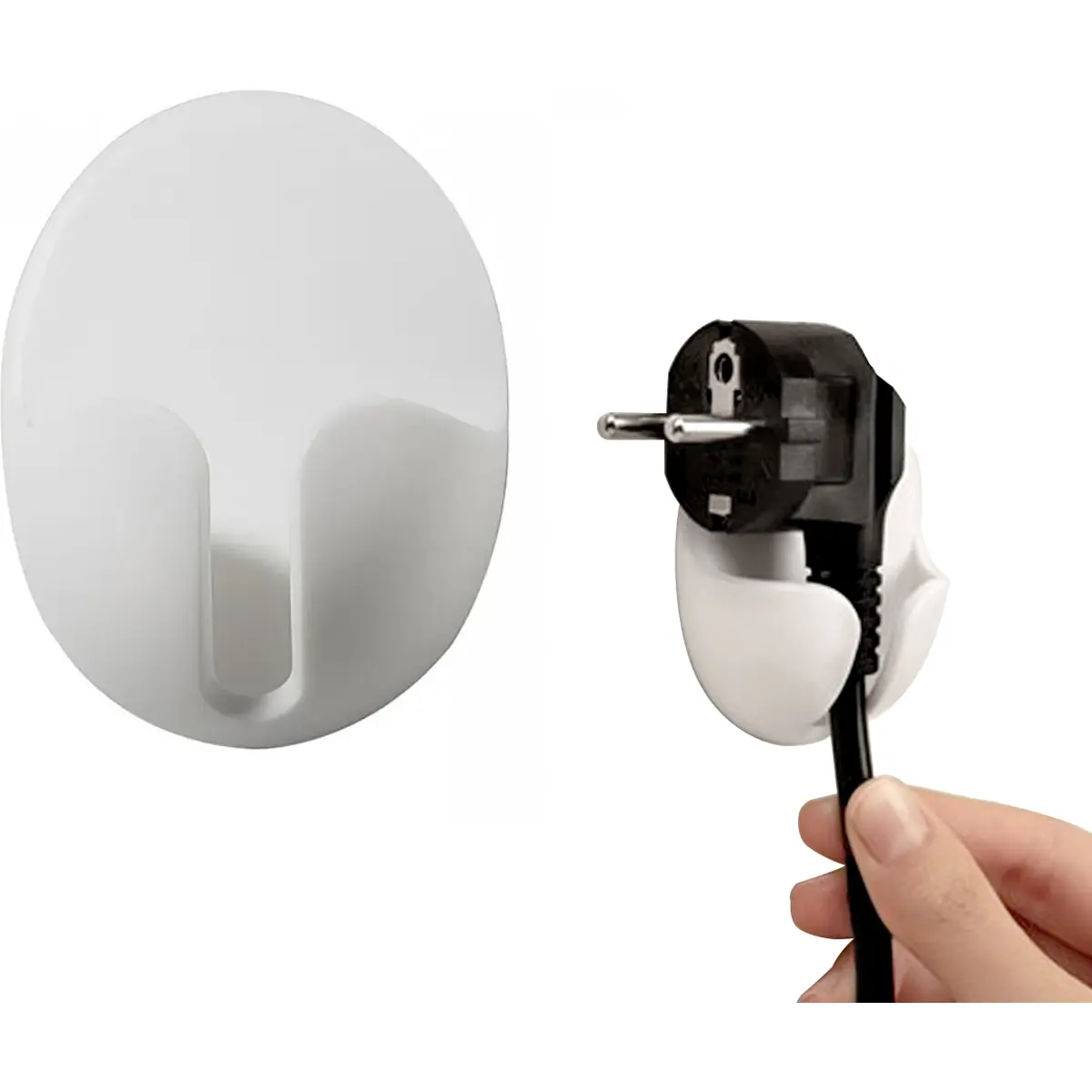 Este suporte adesivo de parede para tomadas, disponível em duas unidades brancas, ajuda a organizar espaços de trabalho e domésticos, mantendo os cabos de alimentação acessíveis e fora do chão. Compatível com cabos até Ø7 mm, pode ser aplicado em superfícies lisas, limpas e sem pó ou gordura. A aderência pode diminuir em superfícies porosas ou com revestimentos LSE, pelo que convém evitar essas situações. Ideal para melhorar a arrumação e reduzir a acumulação de poeira.
