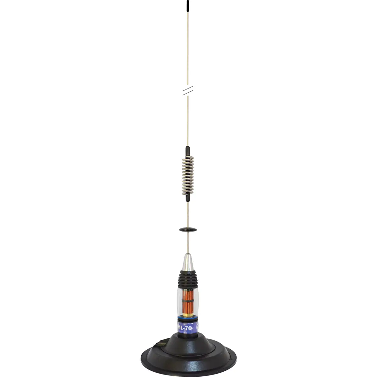 A antena CB PNI ML70 é uma solução compacta e eficiente para utilizadores que procuram uma comunicação fiável sem sacrificar espaço. Com um comprimento total de 70 cm (incluindo a base magnética), esta antena oferece um alcance de até 8–9 km em condições ideais. A base magnética incluída (145 mm de diâmetro) garante uma fixação segura mesmo a alta velocidade.