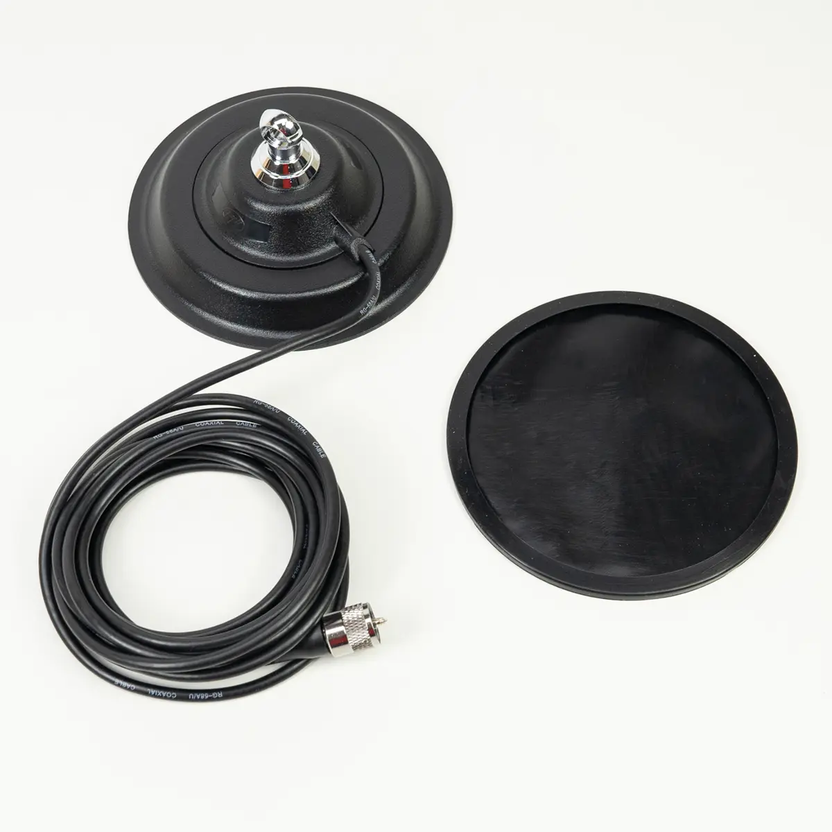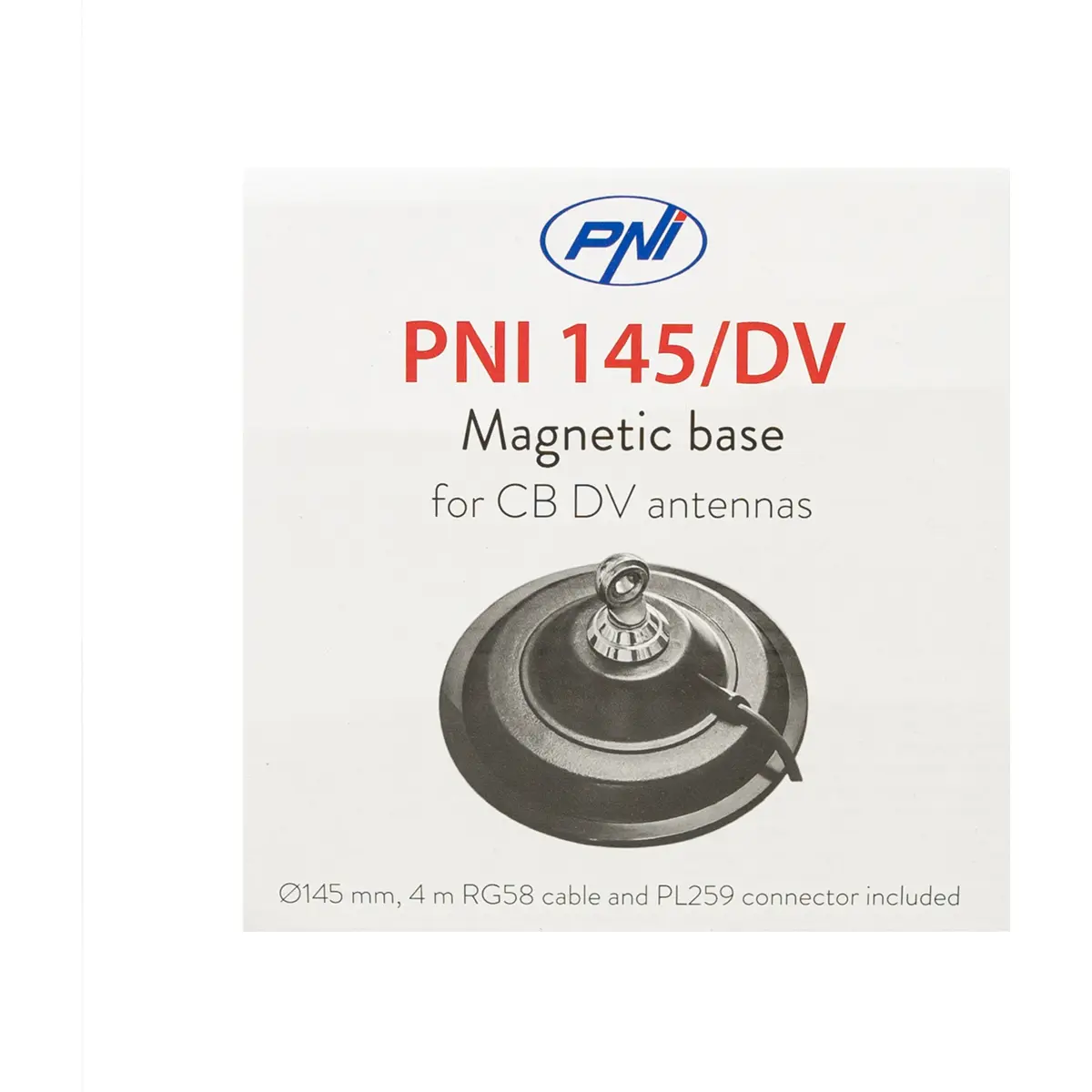 A base magnética PNI 145 / DV é uma solução robusta e eficiente para fixação de antenas CB em veículos, garantindo estabilidade mesmo a altas velocidades. Com um design agradável e dimensões compactas, esta base inclui suporte de borracha protetor e cabo de qualidade para uma instalação prática e segura.