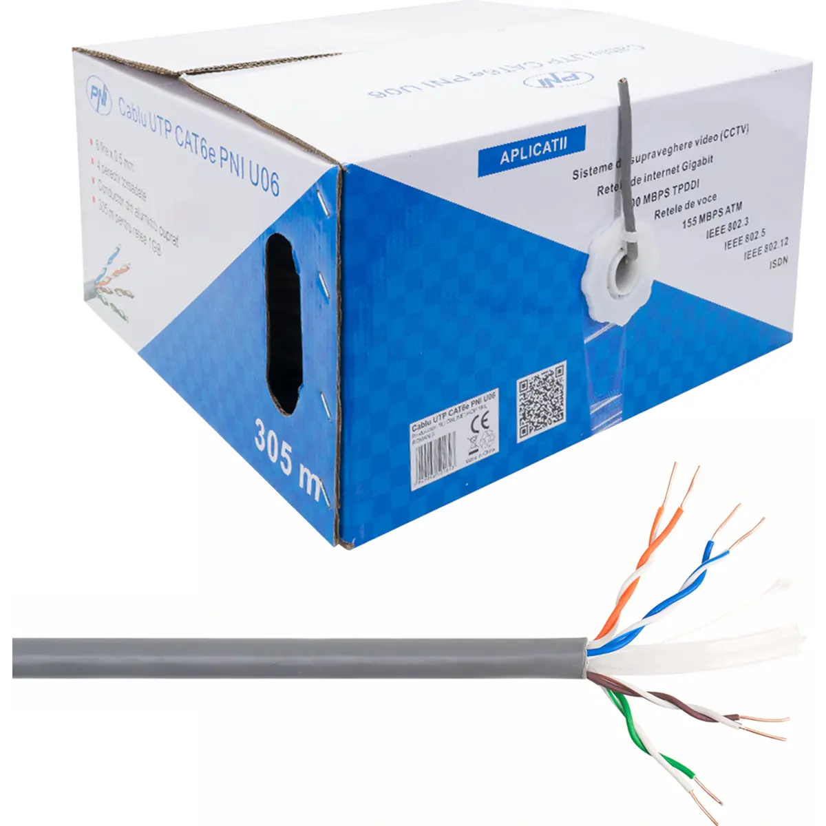 PNI U06 - Cabo CAT6 U/UTP unifilar CCA AWG24 - caixa 305m cinza
