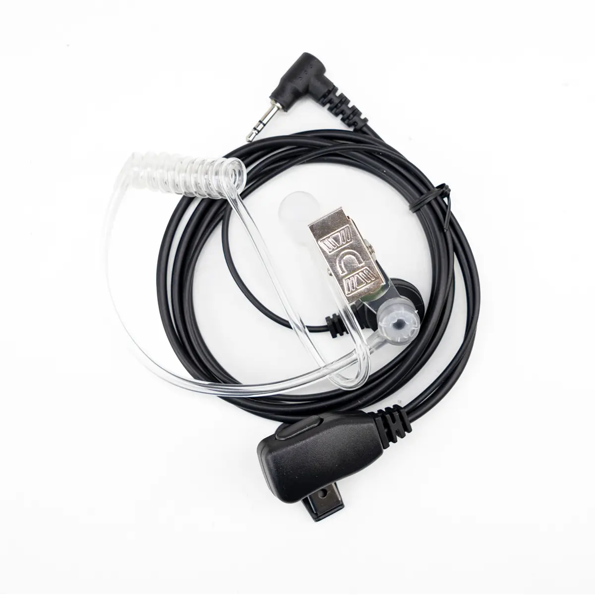 Auscultador de tubo acústico com microfone integrado e botão PTT para comunicação móvel em estações de rádio com jack 2.5 mm. O sistema possui tubo transparente que reduz ruído ambiente, fixação ao redor da orelha para conforto prolongado e cabo de 120 cm que permite movimentos. Compatível com estações de rádio Motorola com saída de 2.5 mm, é indicado para uso profissional em ambientes ruidosos, oferecendo transmissão estável e áudio claro durante as comunicações.