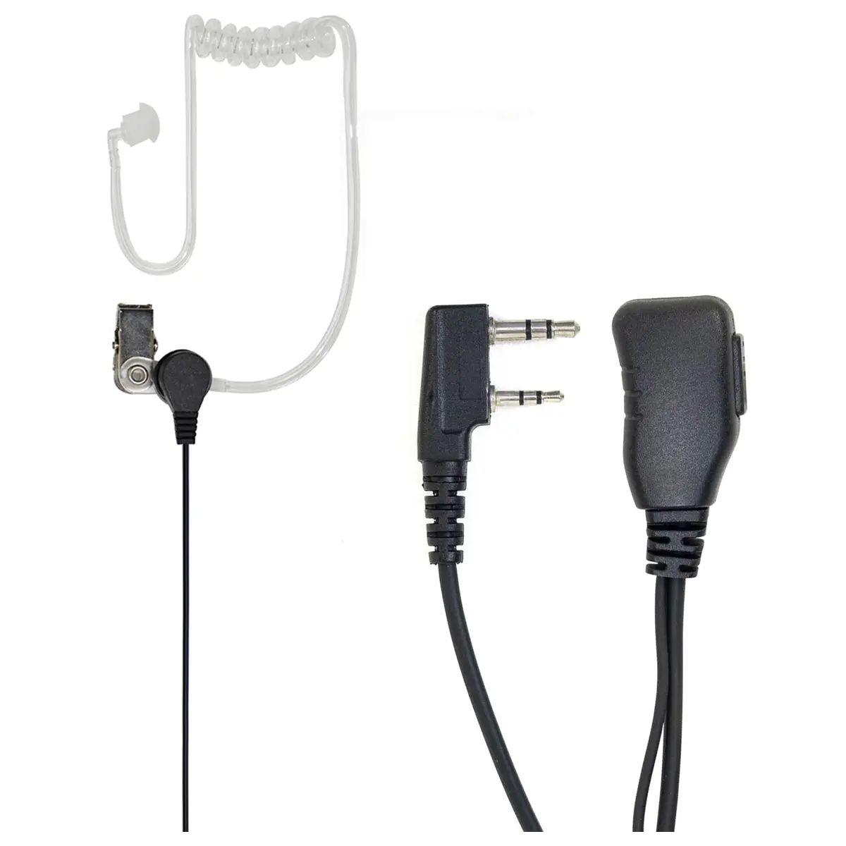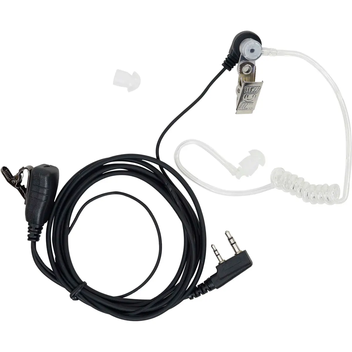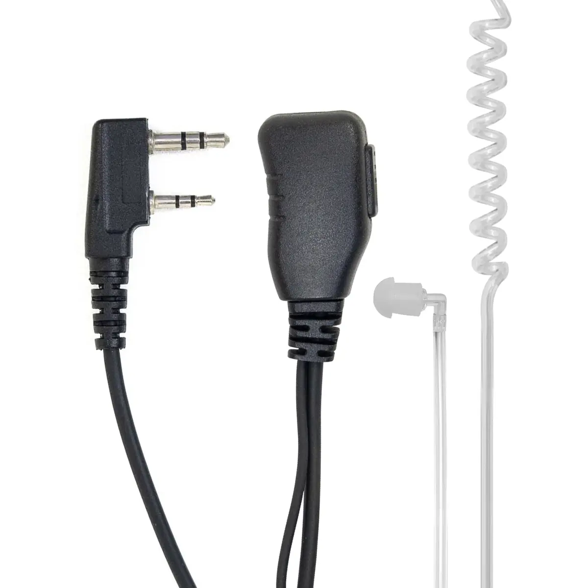 Auricular de tubo acústico com microfone integrado e botão PTT, compatível com estações CB e PMR, ideal para uso diário em comunicação móvel. Possui cabo de 160 cm, ficha em ângulo tipo L, conectores 3,5 mm e 2,5 mm, e clip de lapela para fixação. Inclui esponja de proteção para auscultadores e opção de substituição, proporcionando conforto prolongado e higiene. O conjunto facilita a transmissão sem manusear o microfone, com controlo rápido de PTT e compatibilidade com várias marcas de rádios CB/PMR.