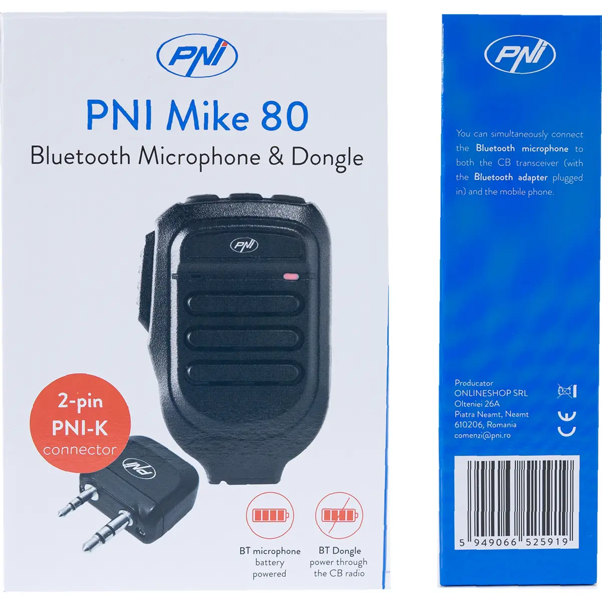 O conjunto PNI Mike 80 foi concebido para melhorar significativamente a experiência de comunicação via rádio CB, permitindo uma utilização mais cómoda e flexível. Este microfone sem fios, em conjunto com o dongle Bluetooth incluído, oferece ligação sem fios até 10 metros, permitindo operar a estação CB à distância, mantendo a clareza e fiabilidade da transmissão. Além disso, permite ligação simultânea ao rádio e ao telemóvel, permitindo receber chamadas directamente no microfone com altifalante incorporado.